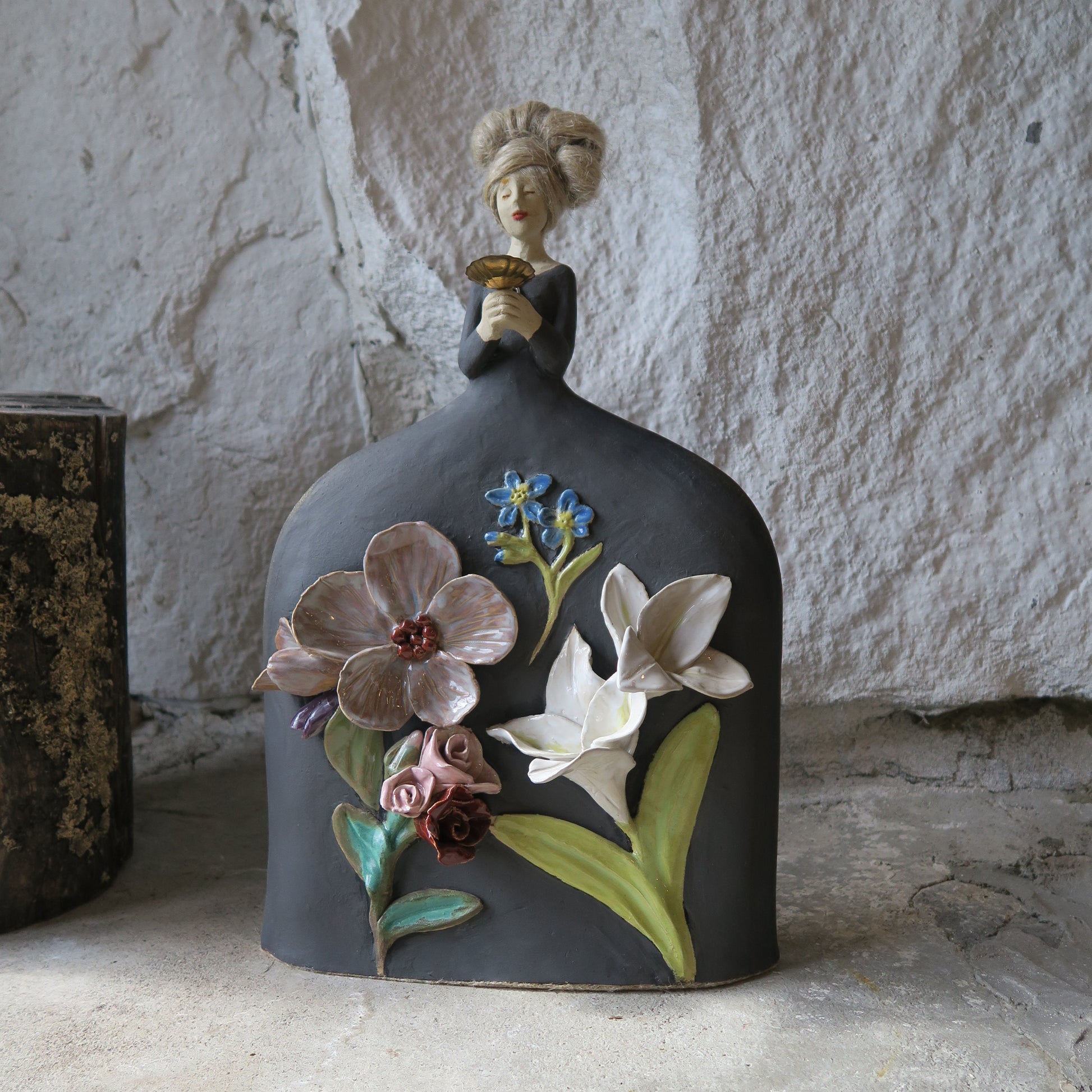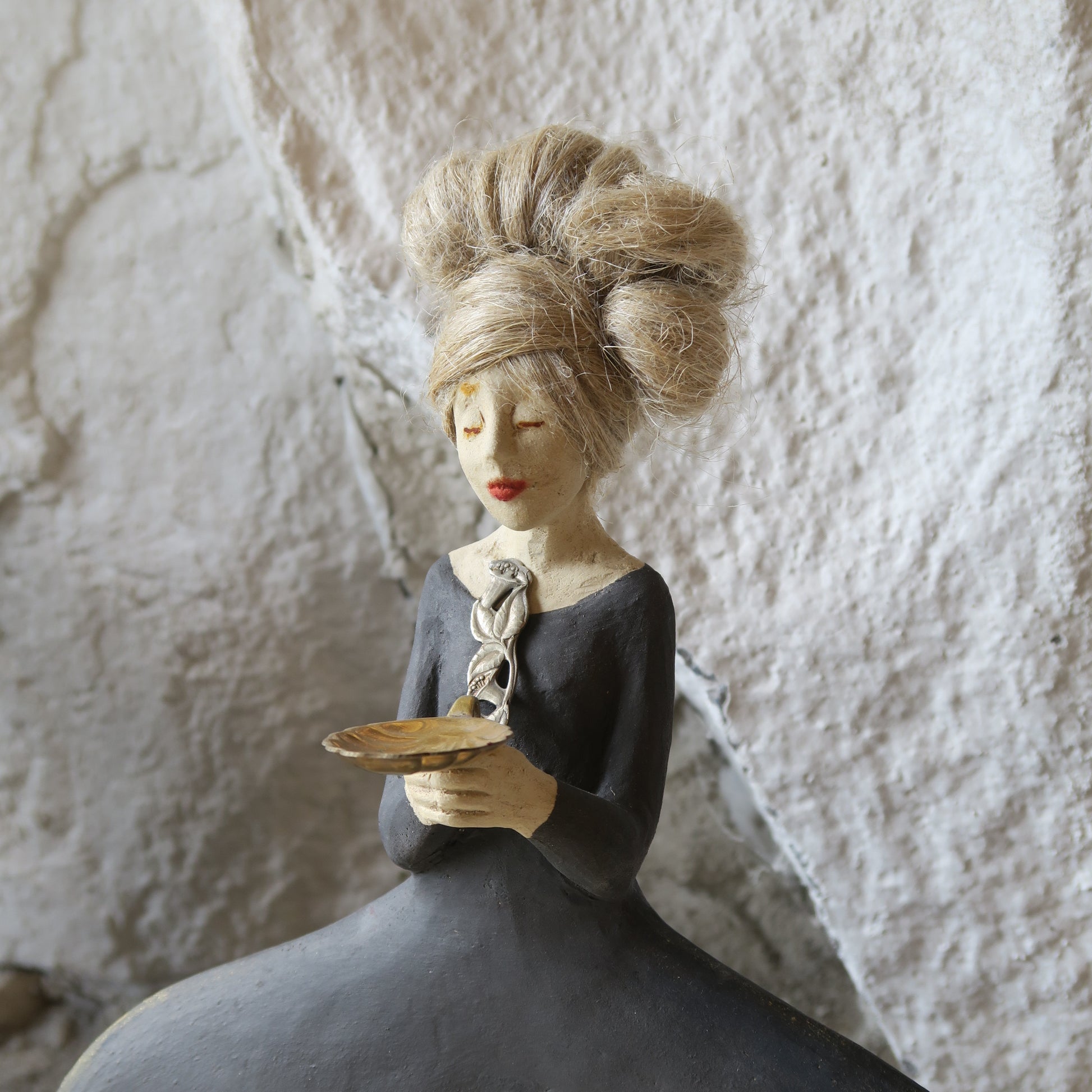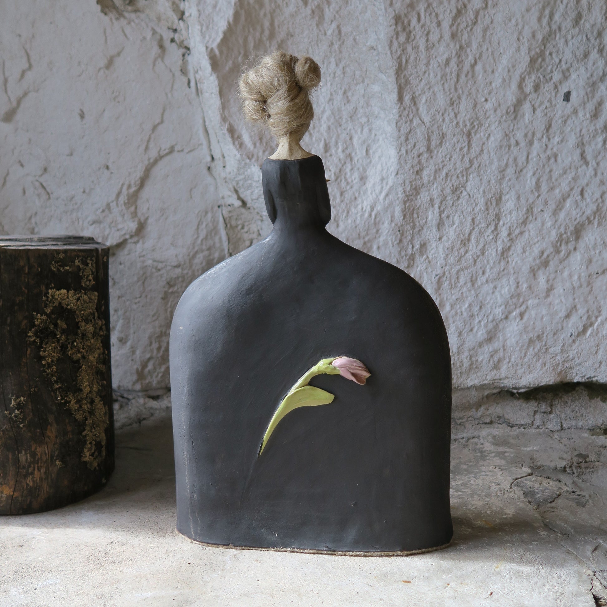 Maarit Lassilan käsin tekemä uniikki veistos. Lasitettua keramiikkaa.