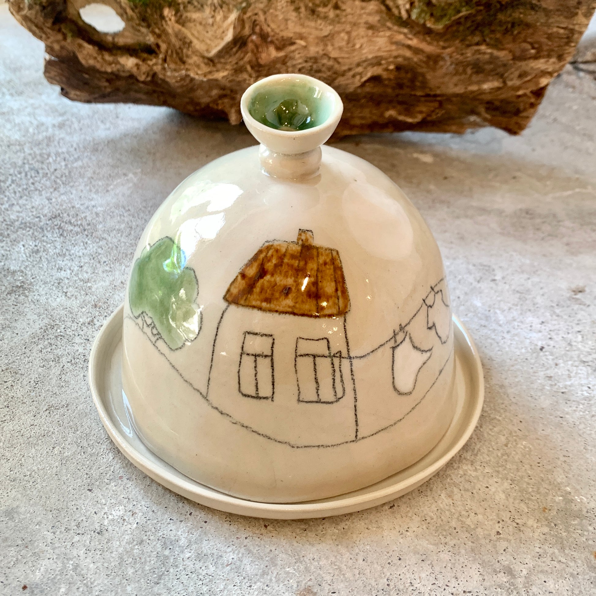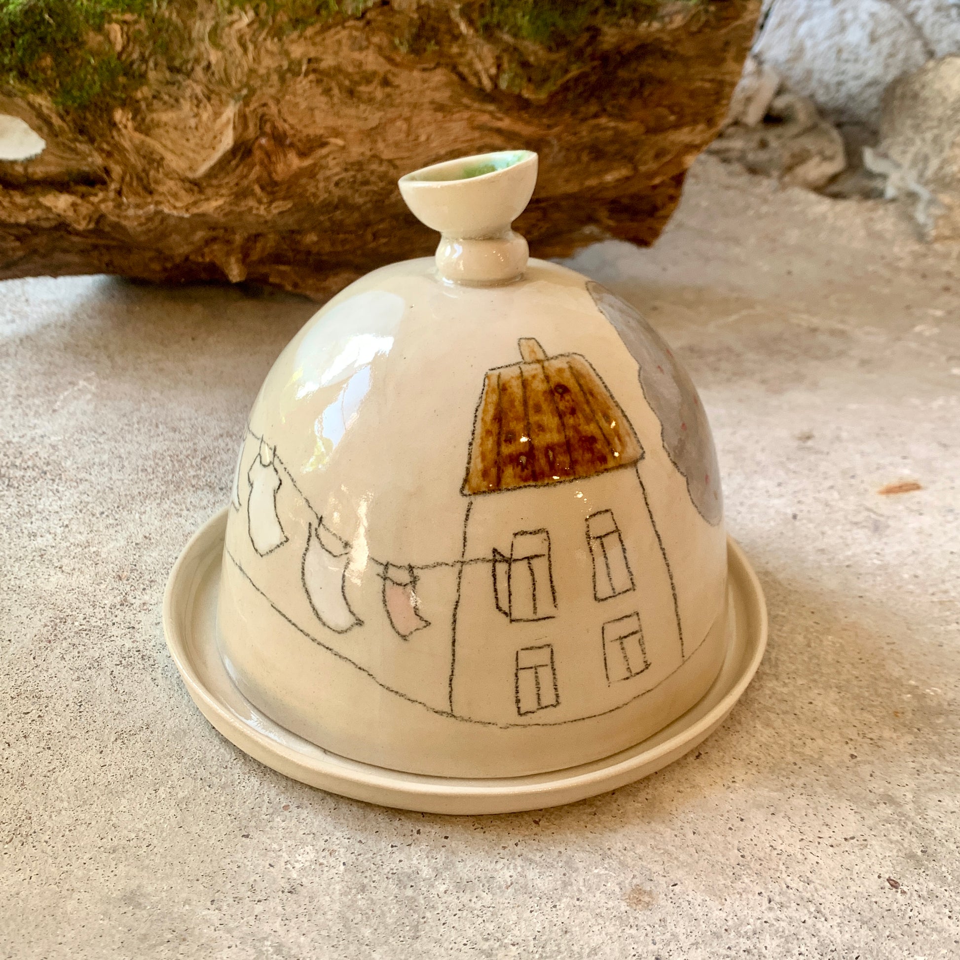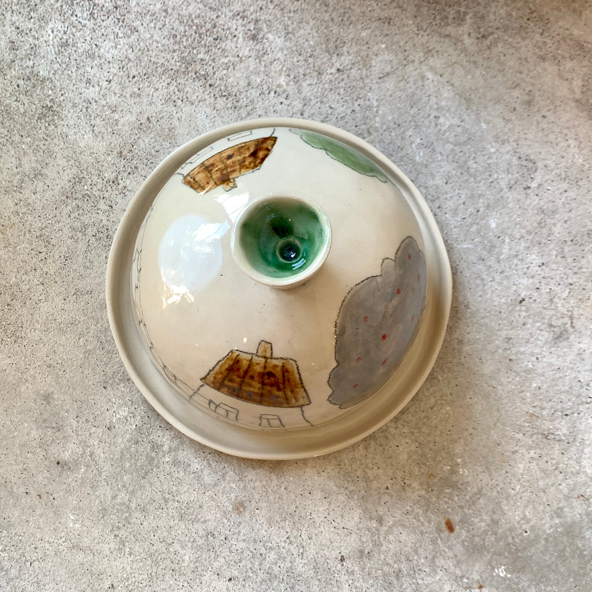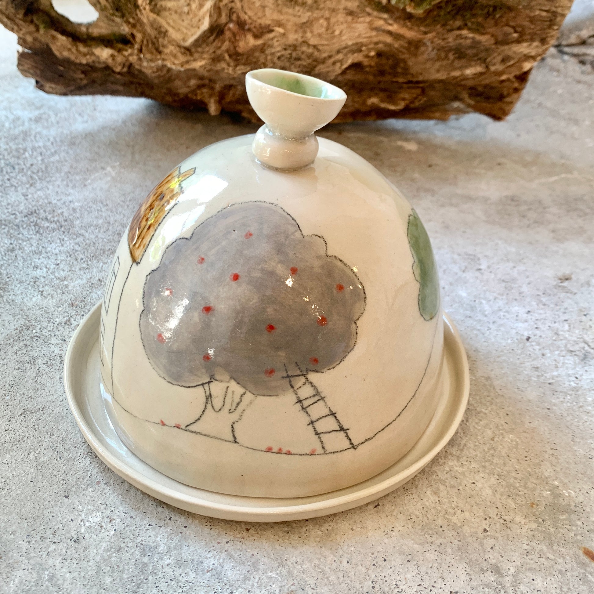 Maarit Lassilan käsin valmistama ja maalaama Story-sarjan leikkisä juustokupu. Story-sarjassa kuvataan kauneuden löytämistä arkisista asioista.