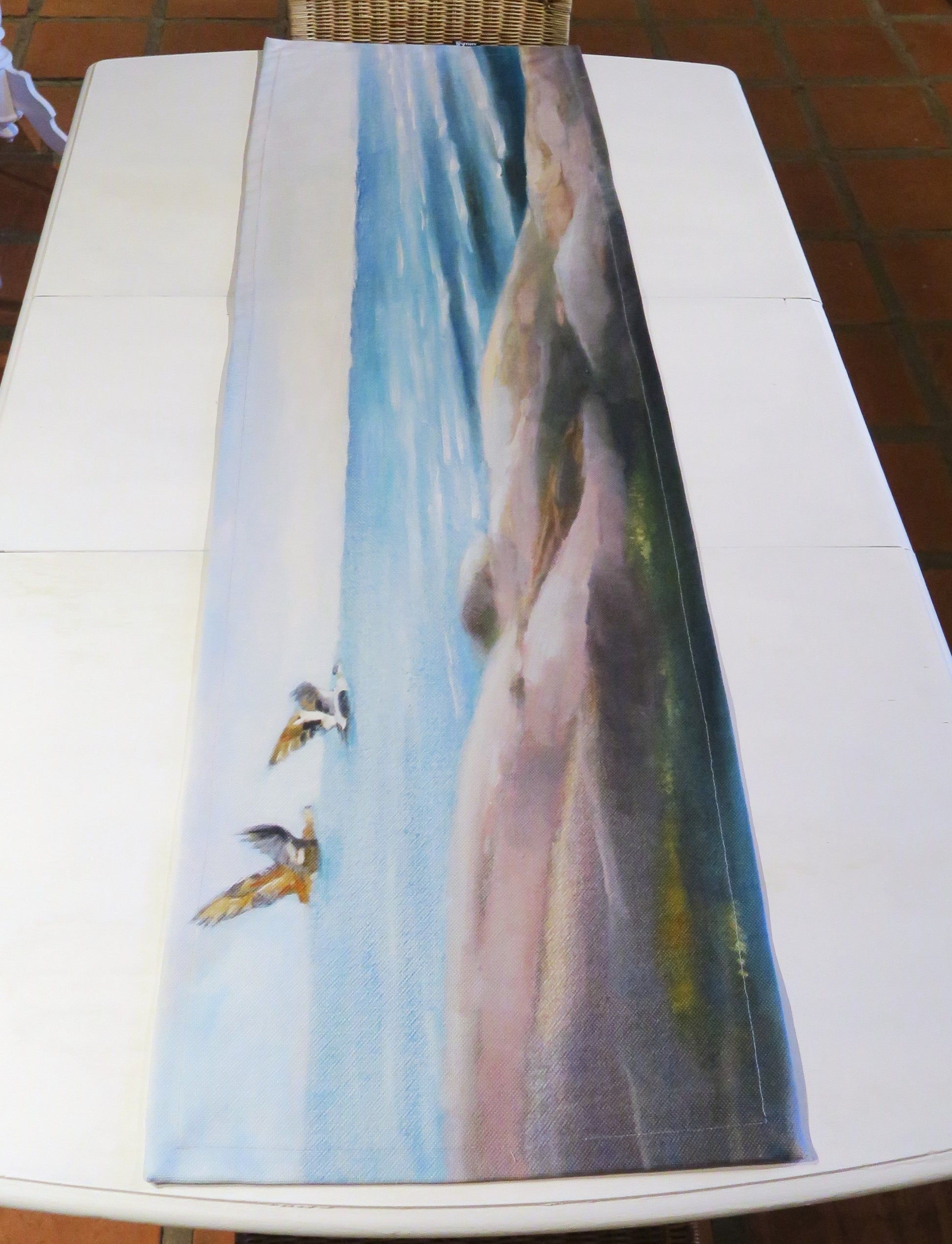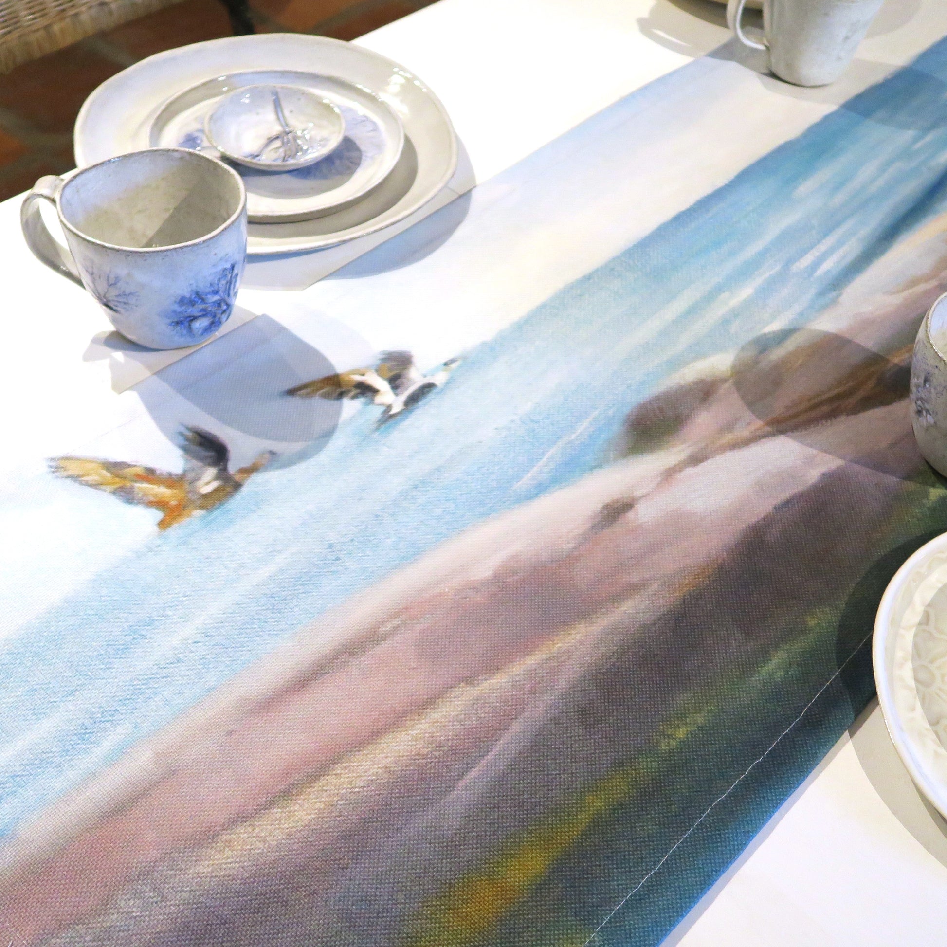 Maarit Lassilan maalauksen pohjalta valmistettu kaitaliina. Kotimaassa valmistettu yhteistyössä Likiz:n kanssa. Materiaalina paksu BCI-sertifioitu 100 % puuvillacanvas.