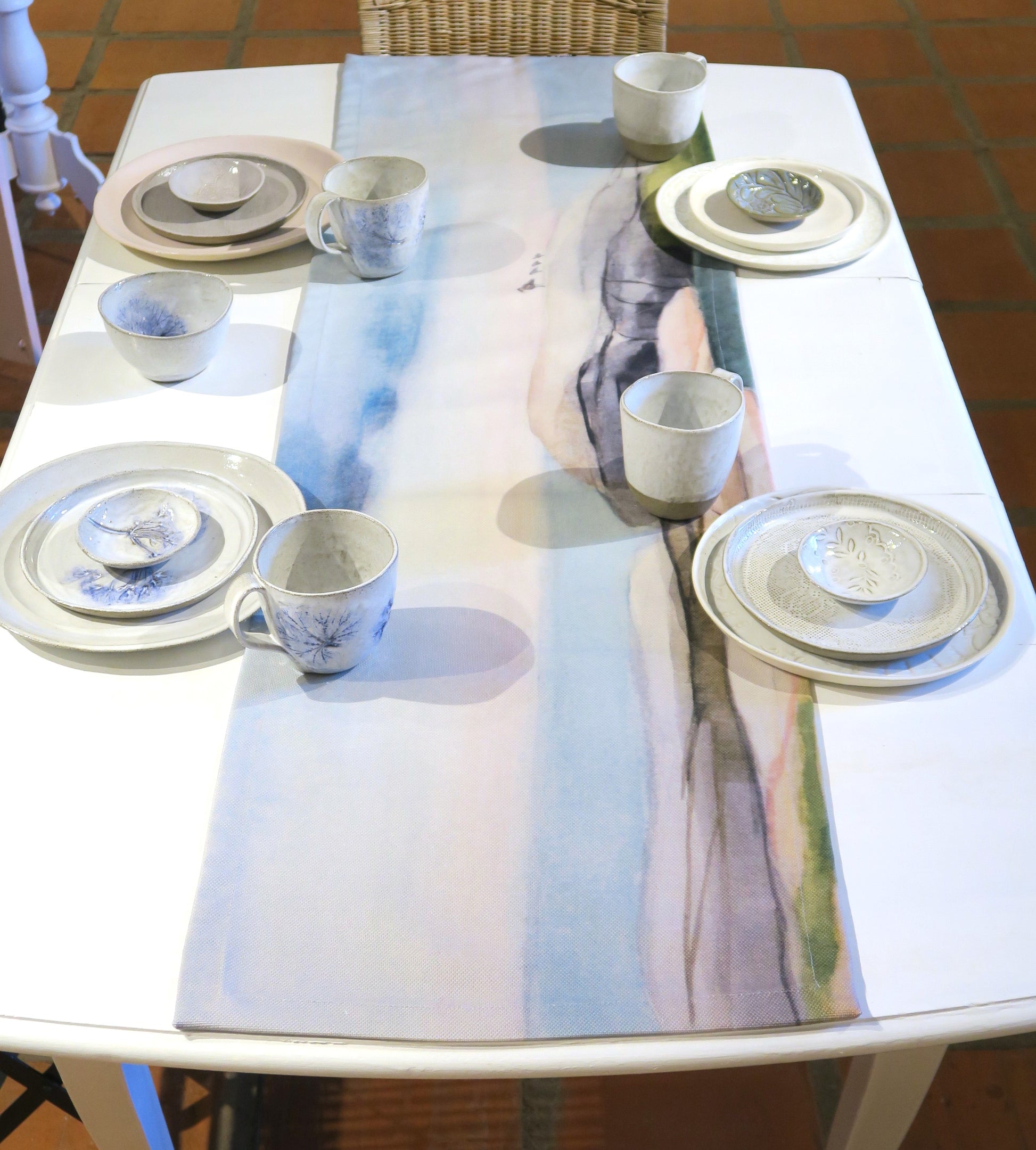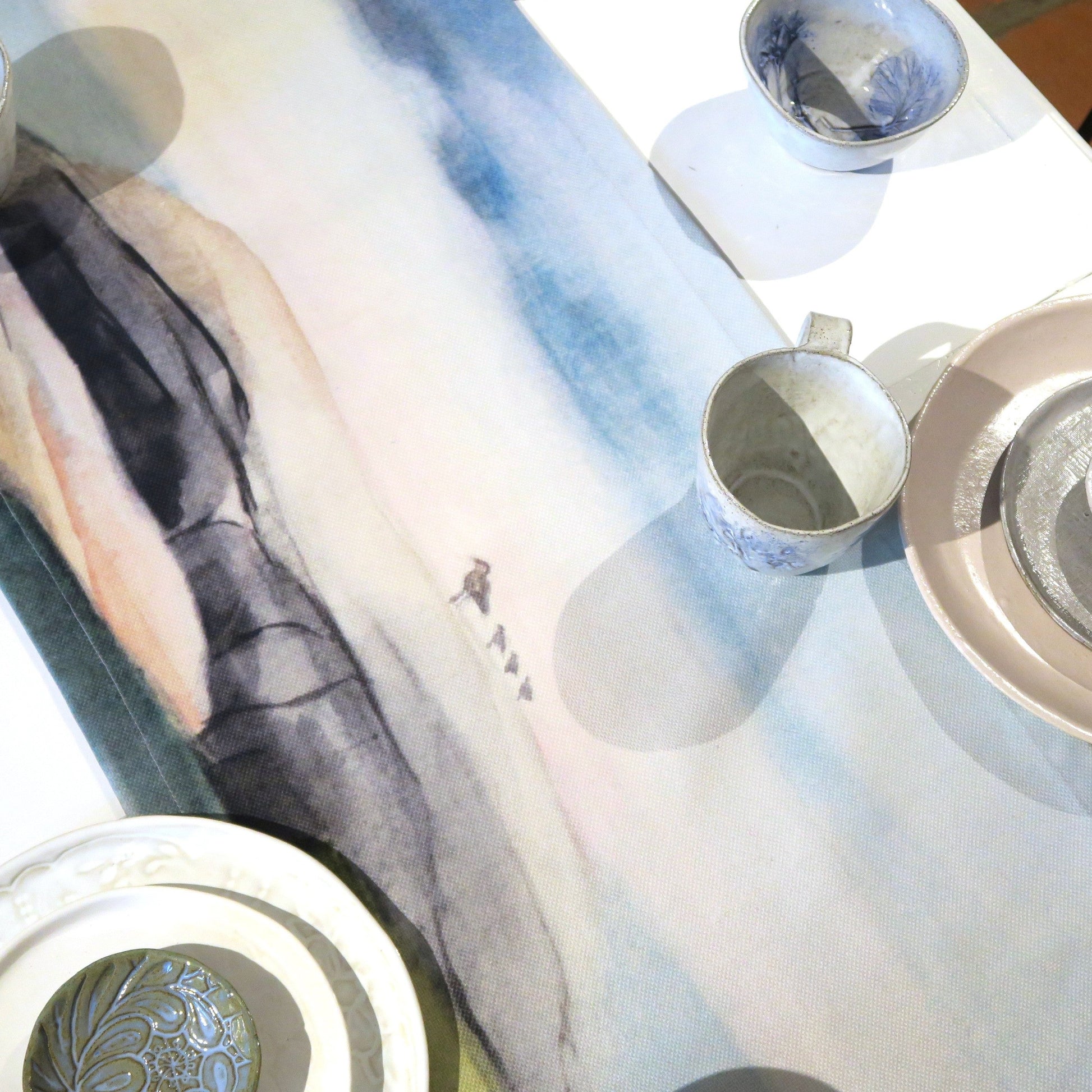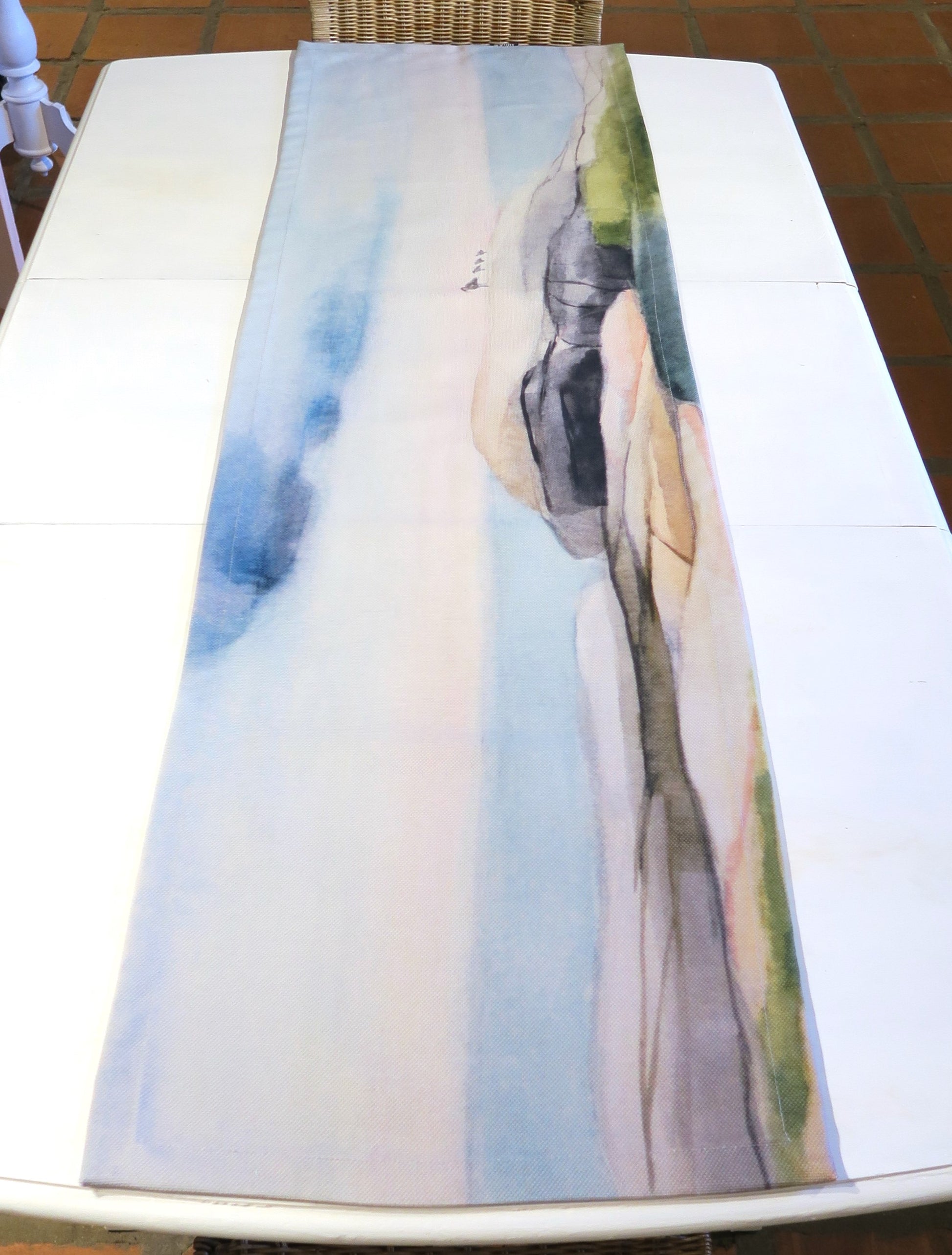 Maarit Lassilan akvarellityön pohjalta valmistettu kaitaliina. Kotimaassa valmistettu yhteistyössä Likiz:n kanssa. Materiaalina paksu BCI-sertifioitu 100 % puuvillacanvas.