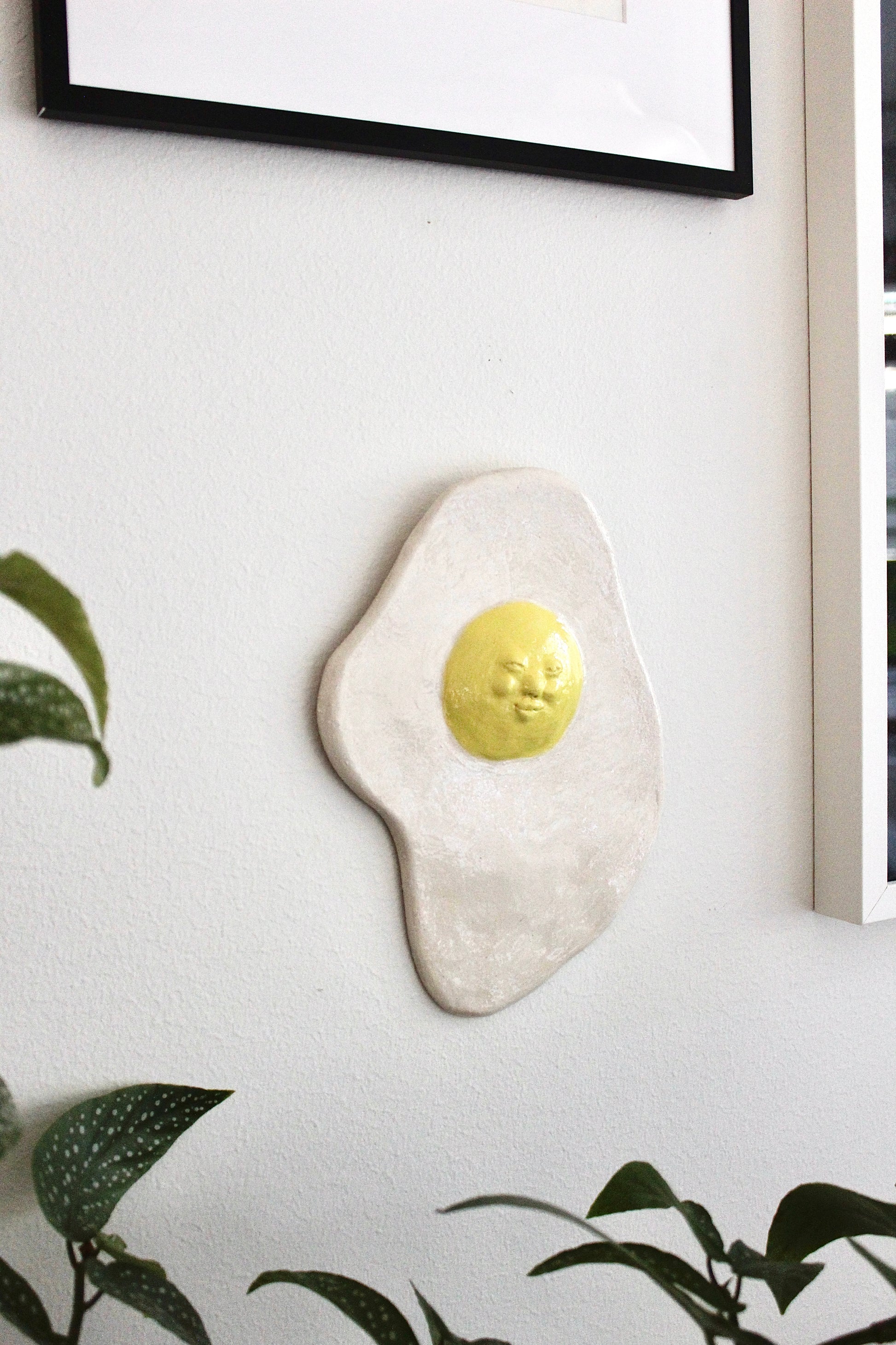 Eunice Sánchezin (@studioguandules) keraaminen kananmuna seinälle hauskuuttamaan, tätä veikeää kananmunaa katsoessa tulee aina hyvälle mielelle! Jokainen kappale on hieman erilainen.