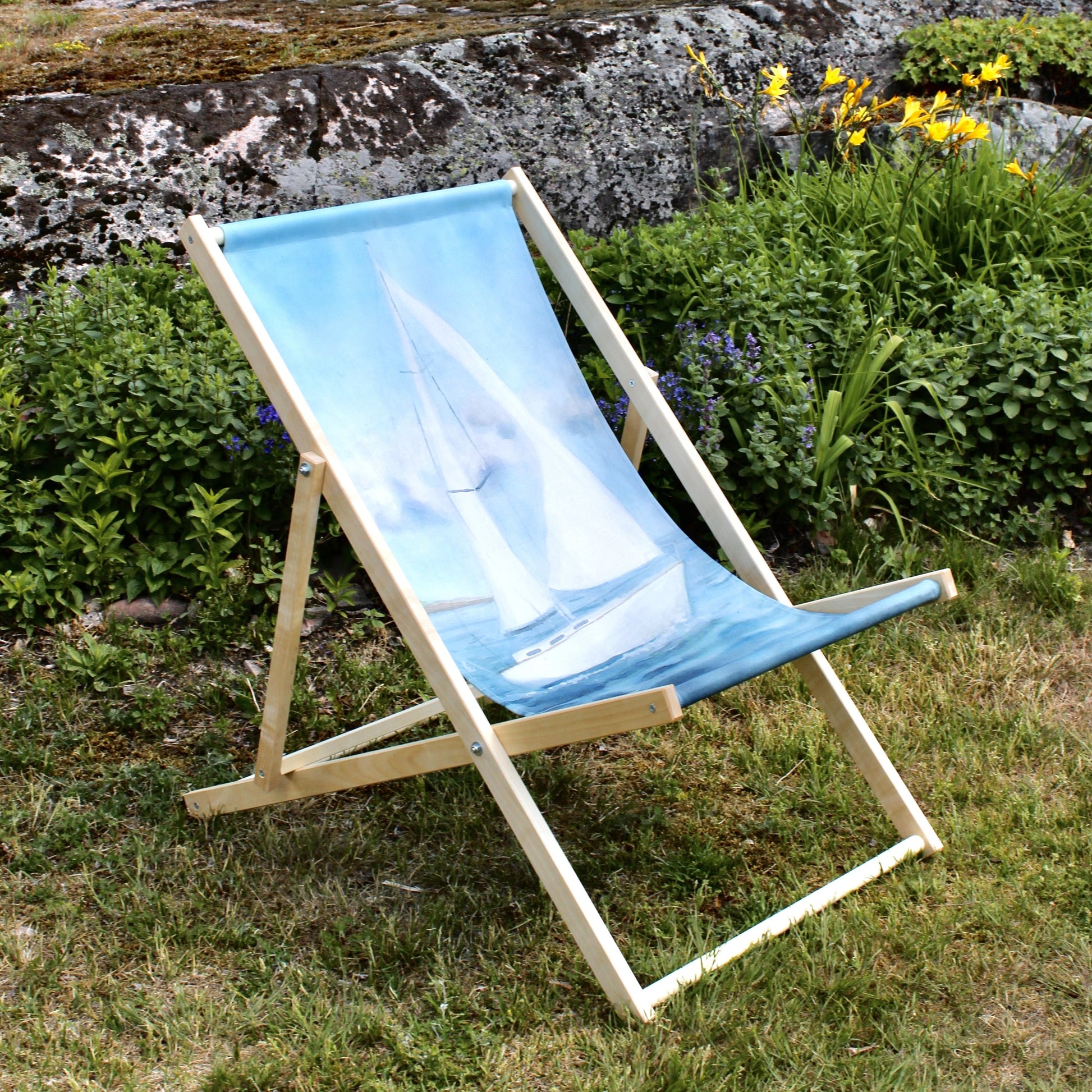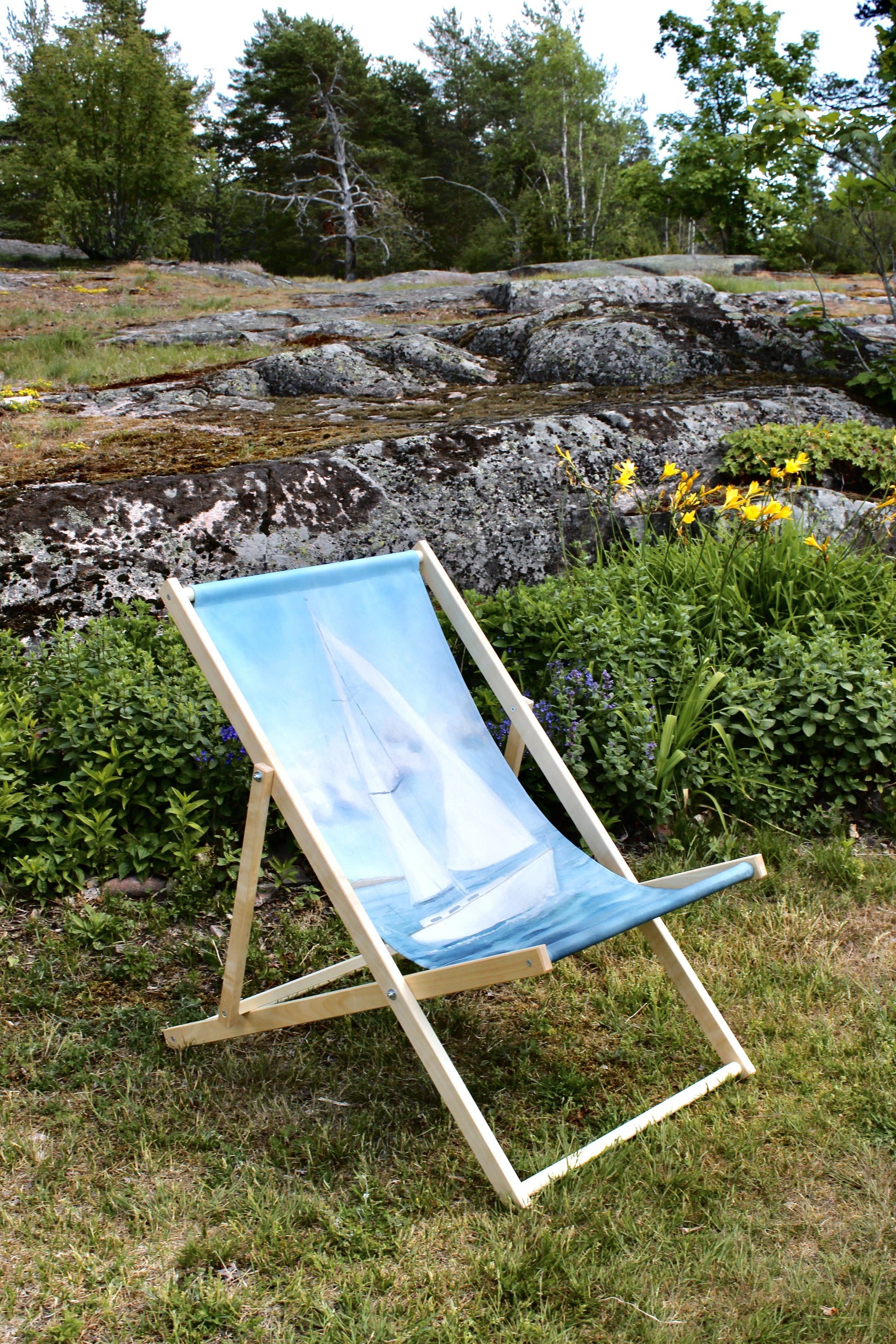 Kangas painettu Maarit Lassilan akvarellityön pohjalta. Kotimaassa valmistettu yhteistyössä Likiz:n kanssa. Puurunko Inkoossa valmistettu käsityönä. Kansituoli on kokoon taittuva. Kangas on irrotettava ja pestävä. Materiaalina paksu BCI-sertifioitu 100 % puuvillacanvas.