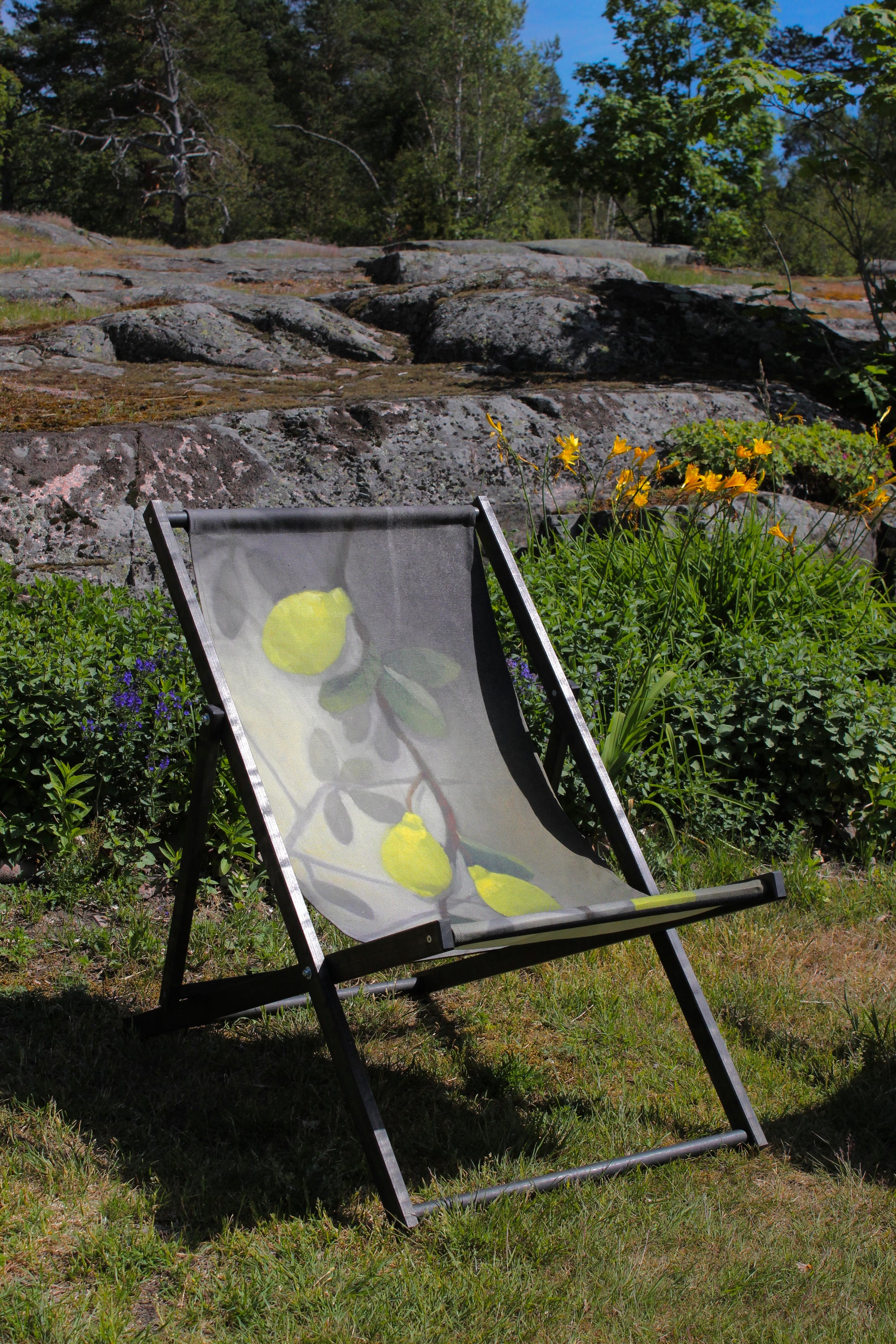 Kangas painettu Maarit Lassilan öljyvärityön pohjalta. Kotimaassa valmistettu yhteistyössä Likiz:n kanssa. Puurunko Inkoossa valmistettu käsityönä. Kansituoli on kokoon taittuva. Kangas on irrotettava ja pestävä. Materiaalina paksu BCI-sertifioitu 100 % puuvillacanvas.