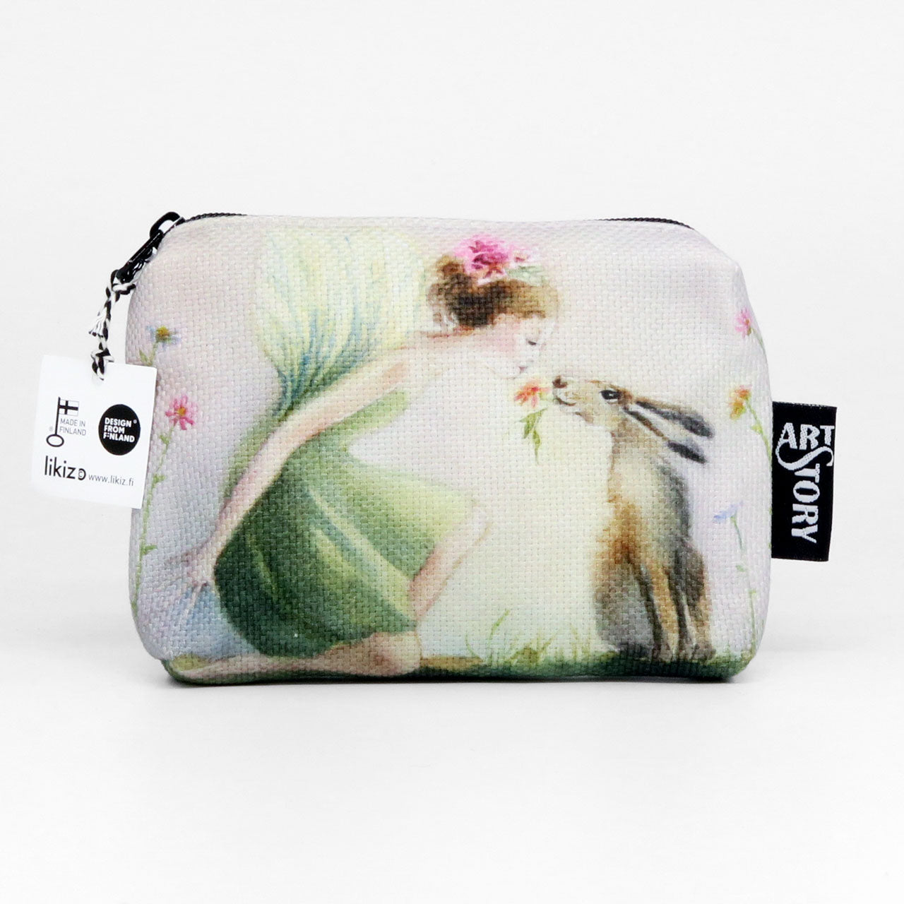Sympaattinen pieni vetoketjullinen pussukka rahakukkaroksi, meikkipussiksi tai pienten asioiden säilyttämiseen.