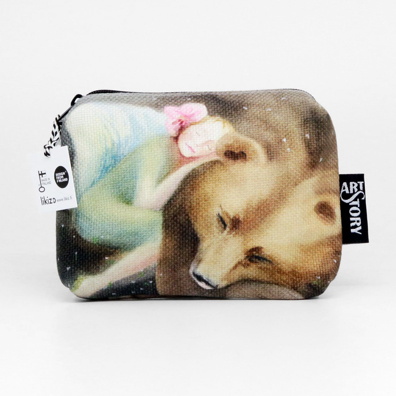 Sympaattinen pieni vetoketjullinen pussukka rahakukkaroksi, meikkipussiksi tai pienten asioiden säilyttämiseen.