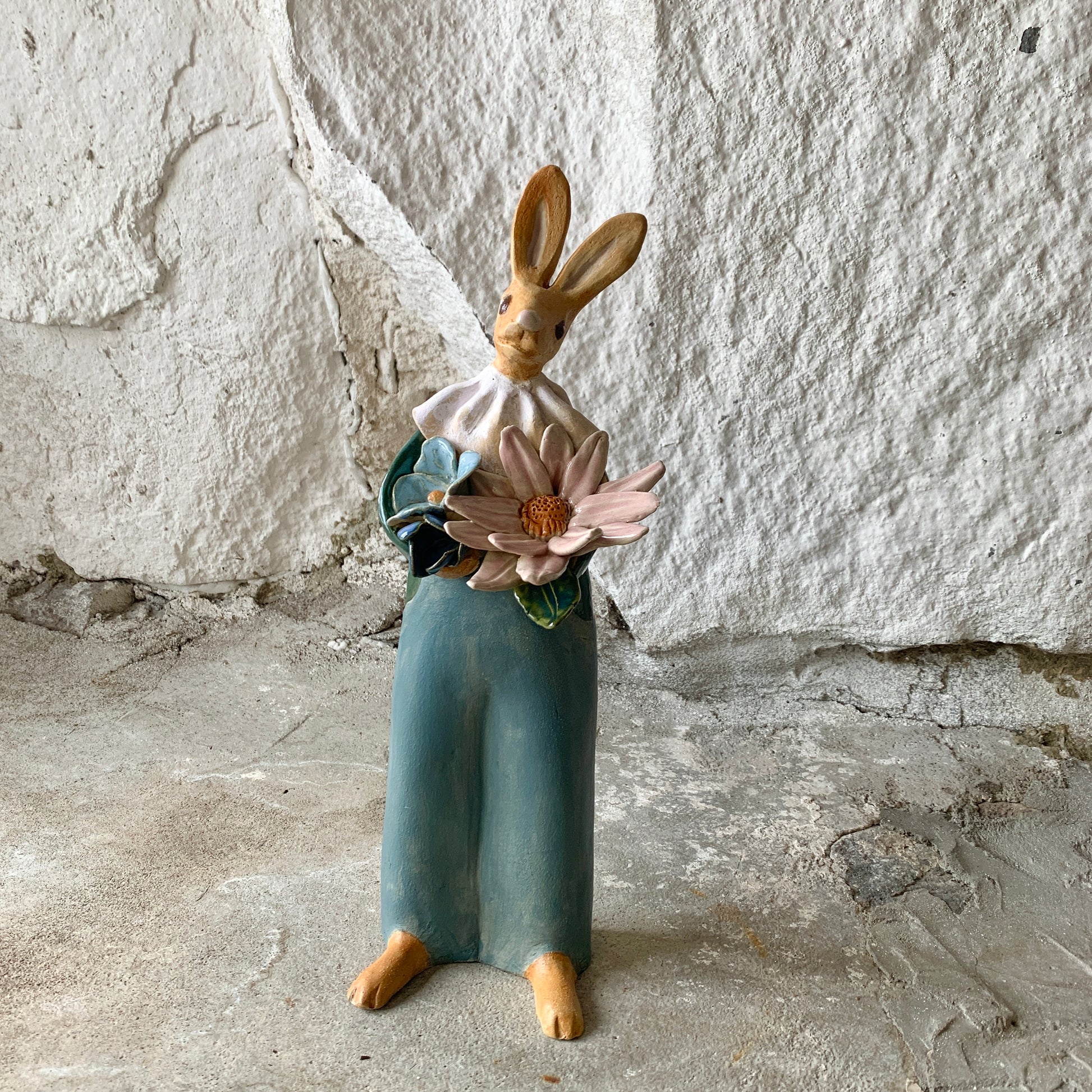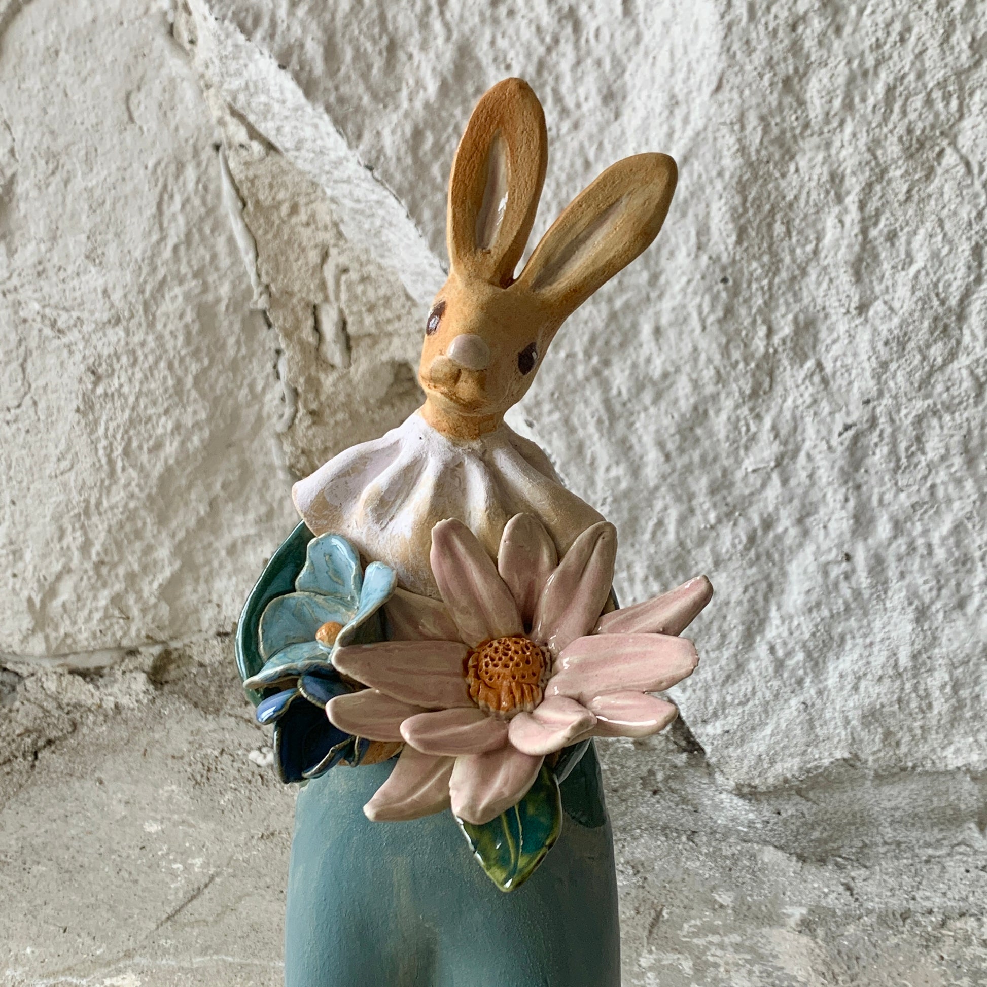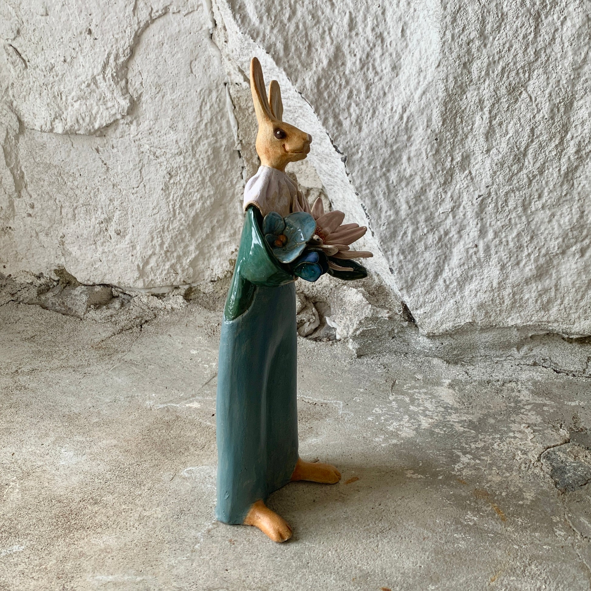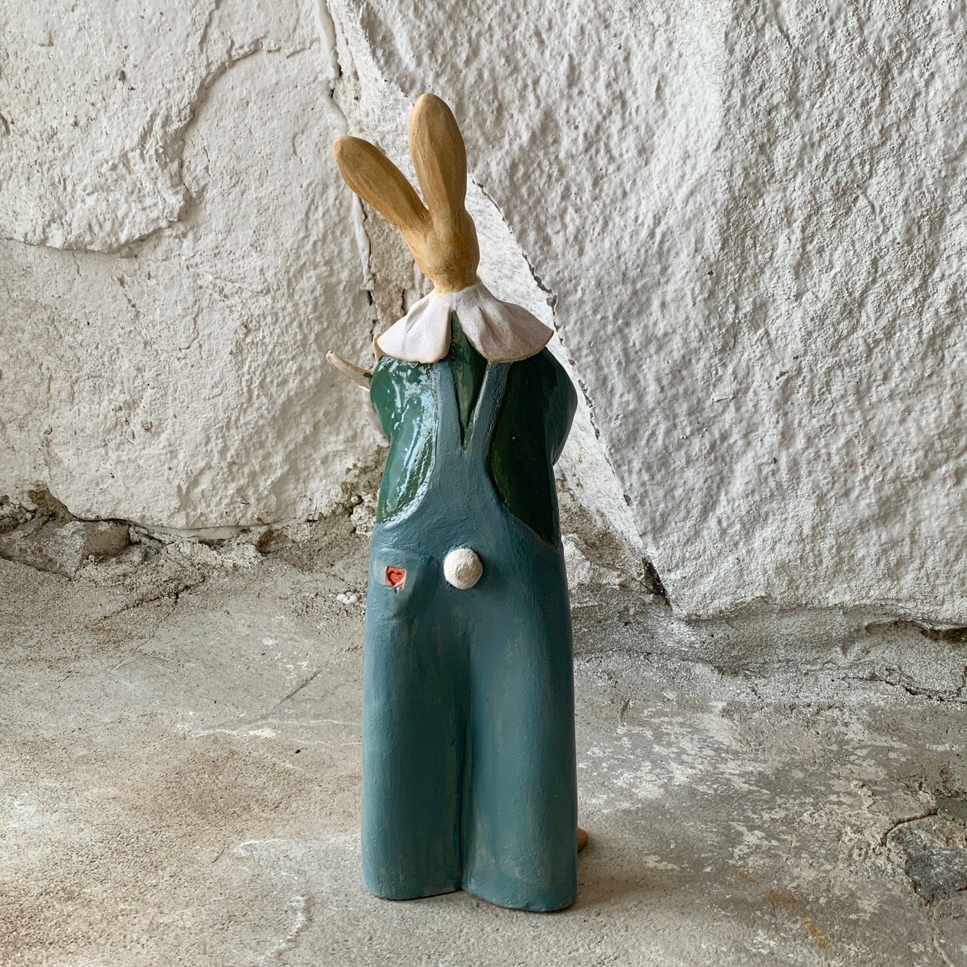 Maarit Lassilan uniikki keraaminen rumpalipupu-veistos.