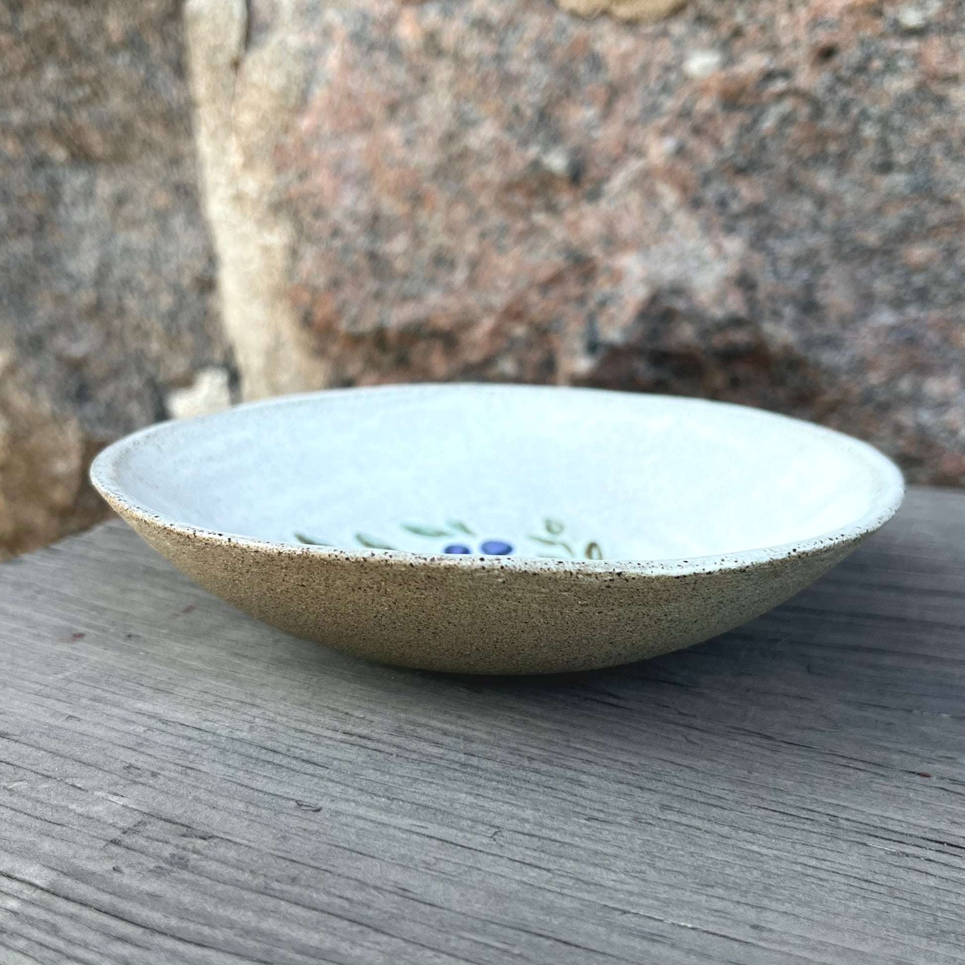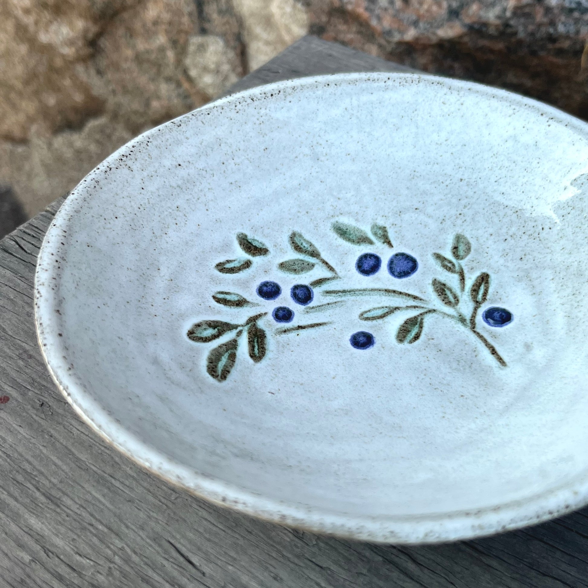 Maarit Lassilan käsin valmistama ja maalaama pieni kulho sopii moneen; alkupaloille, teepussin aluseksi, mausteille tai vaikkapa koruille. Kestää uunin, mikron ja astianpesukoneen.