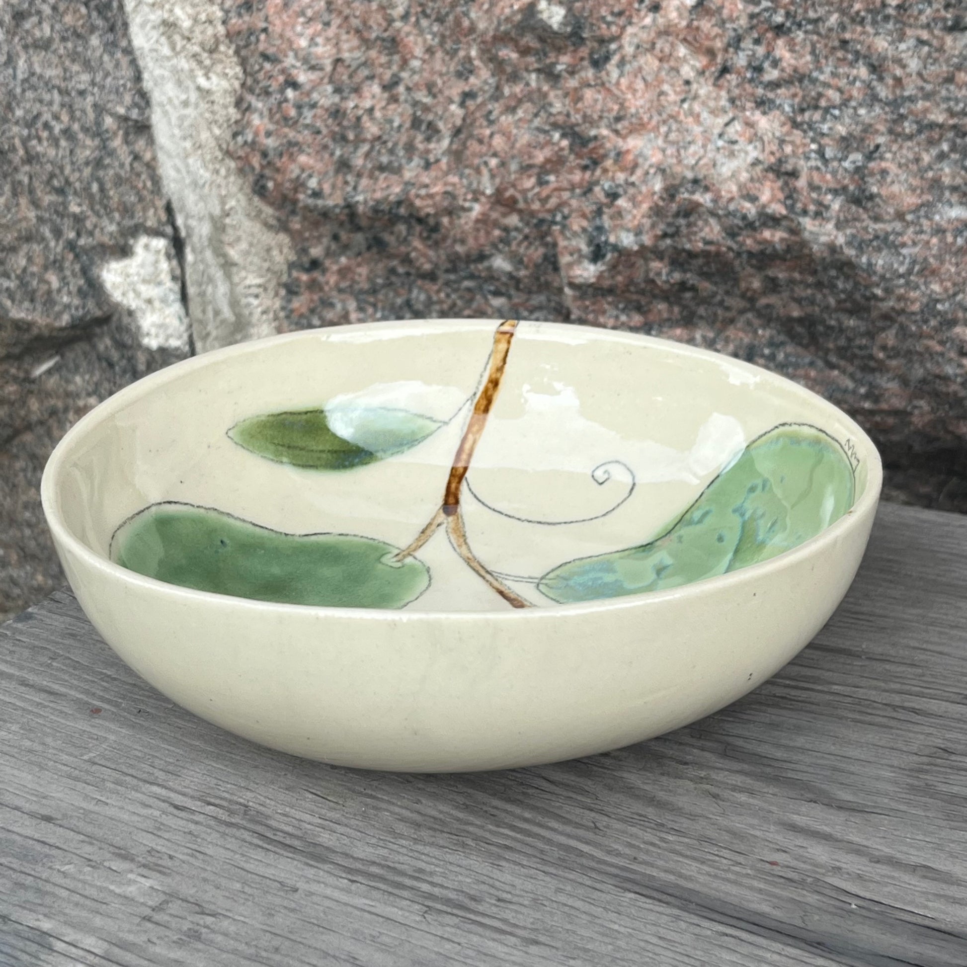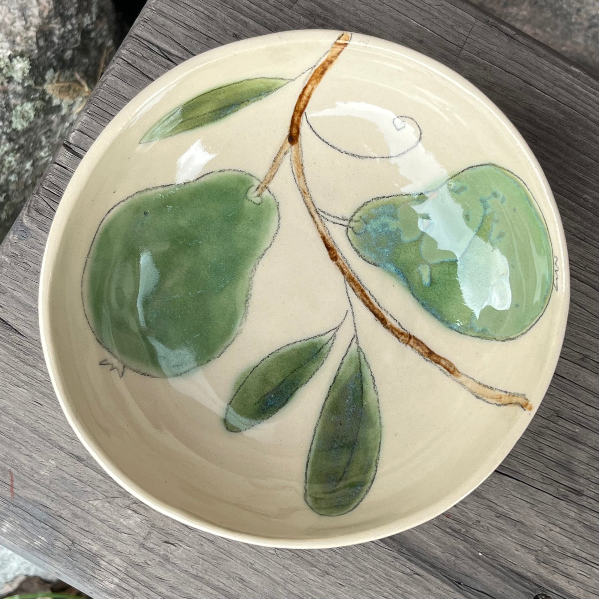 Maarit Lassilan käsin valmistama päärynäkulho sopii moneen. Olisiko tässä uusi lempi aamupalakulhosi? Jokainen on omanlaisensa uniikki kappale. Kestää uunin, mikron ja astianpesukoneen.