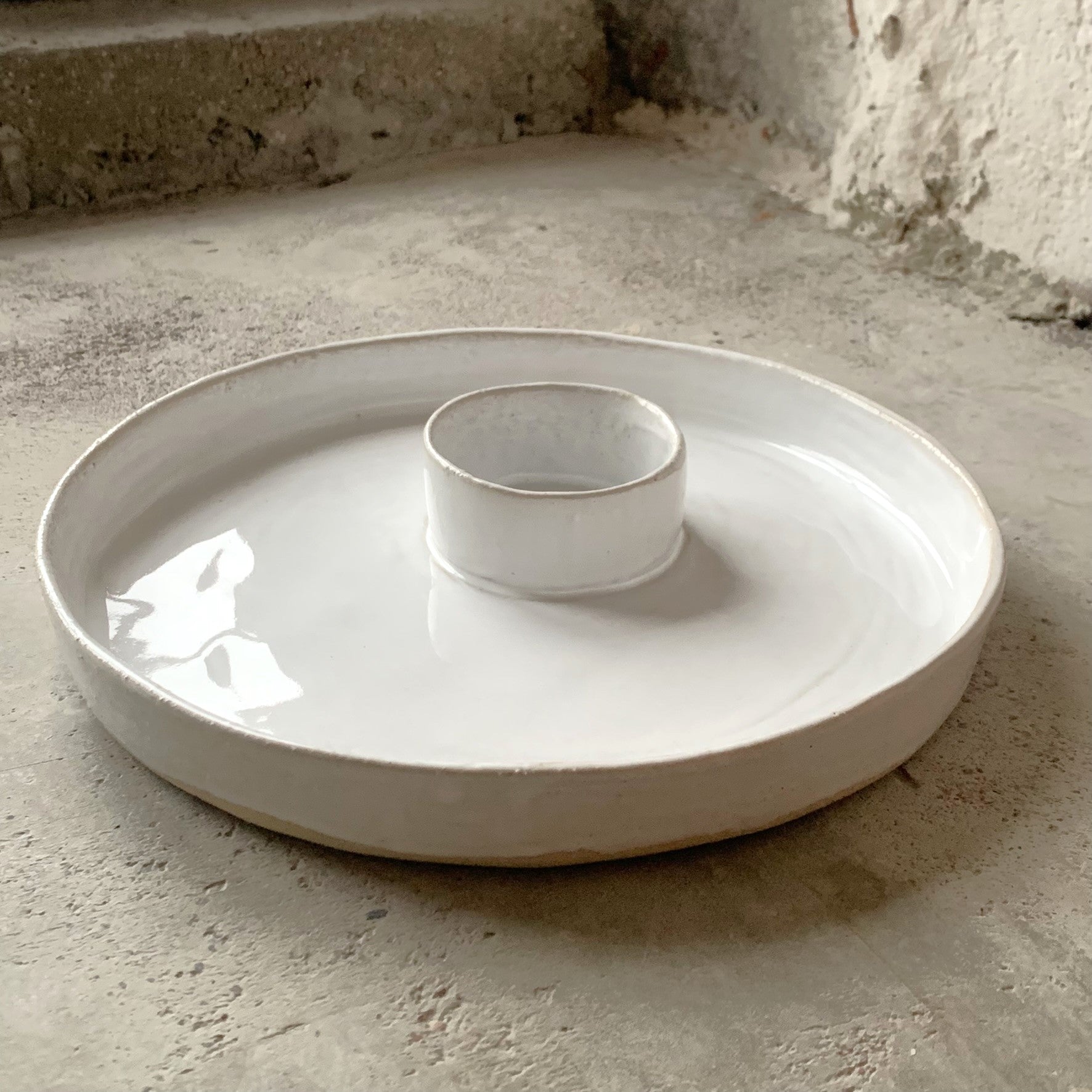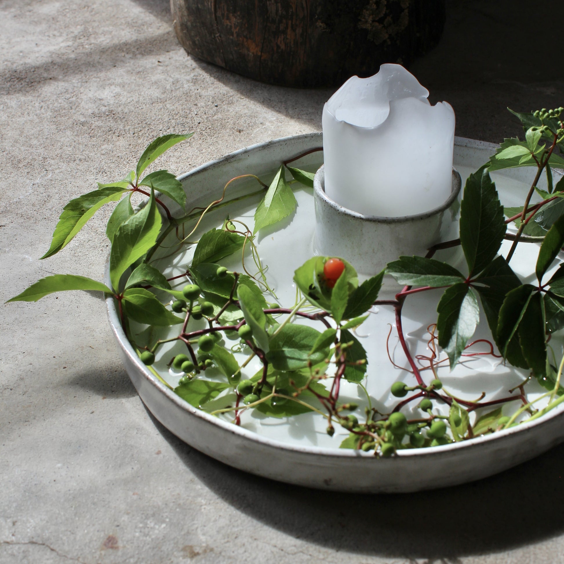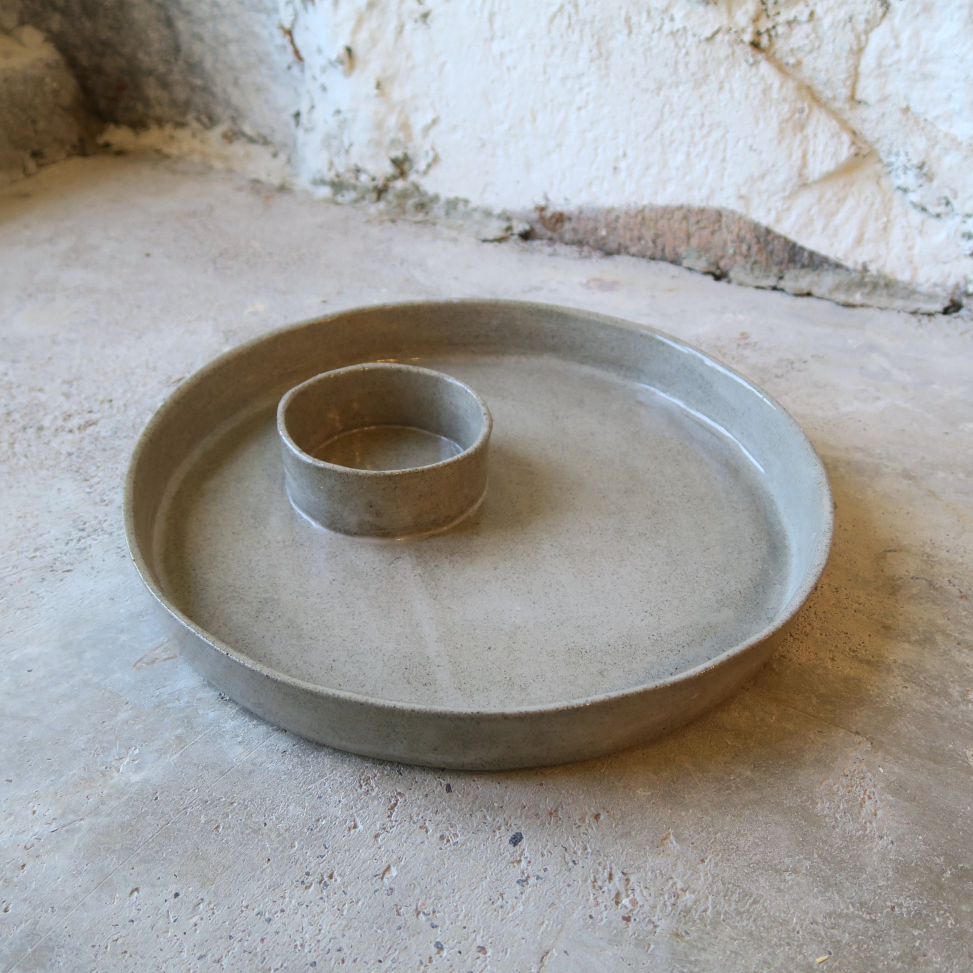 Maarit Lassilan käsin valmistama monikäyttöinen kynttilälautanen. Sopii myös tarjoiluastiaksi esimerkiksi dipattaville naposteltaville. Astianpesukoneen, mikron ja uunin kestävä. Lasitettua keramiikkaa. Saatavana harmaanruskeana, mattamustana ja valkoisena tummalla tai vaalealla savella.