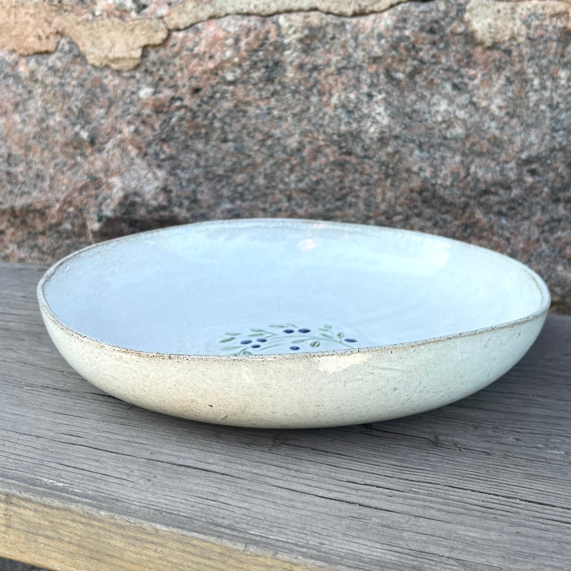 Korkeampireunainen lautanen, sopii täydellisesti pastalle, salaateille tai tarjoiluun. Maarit Lassilan käsin valmistama ja maalaama. Astianpesukoneen ja mikron kestävä.