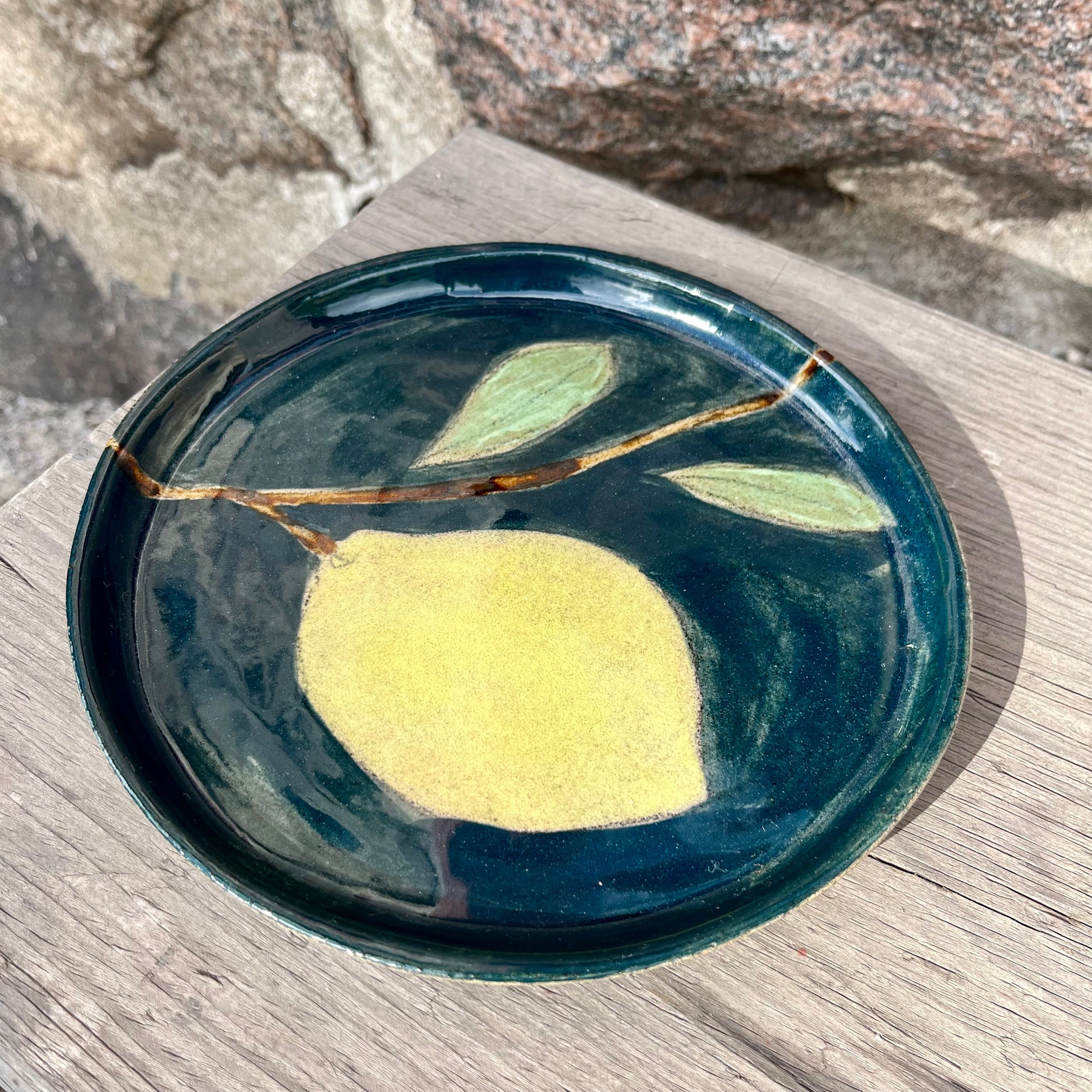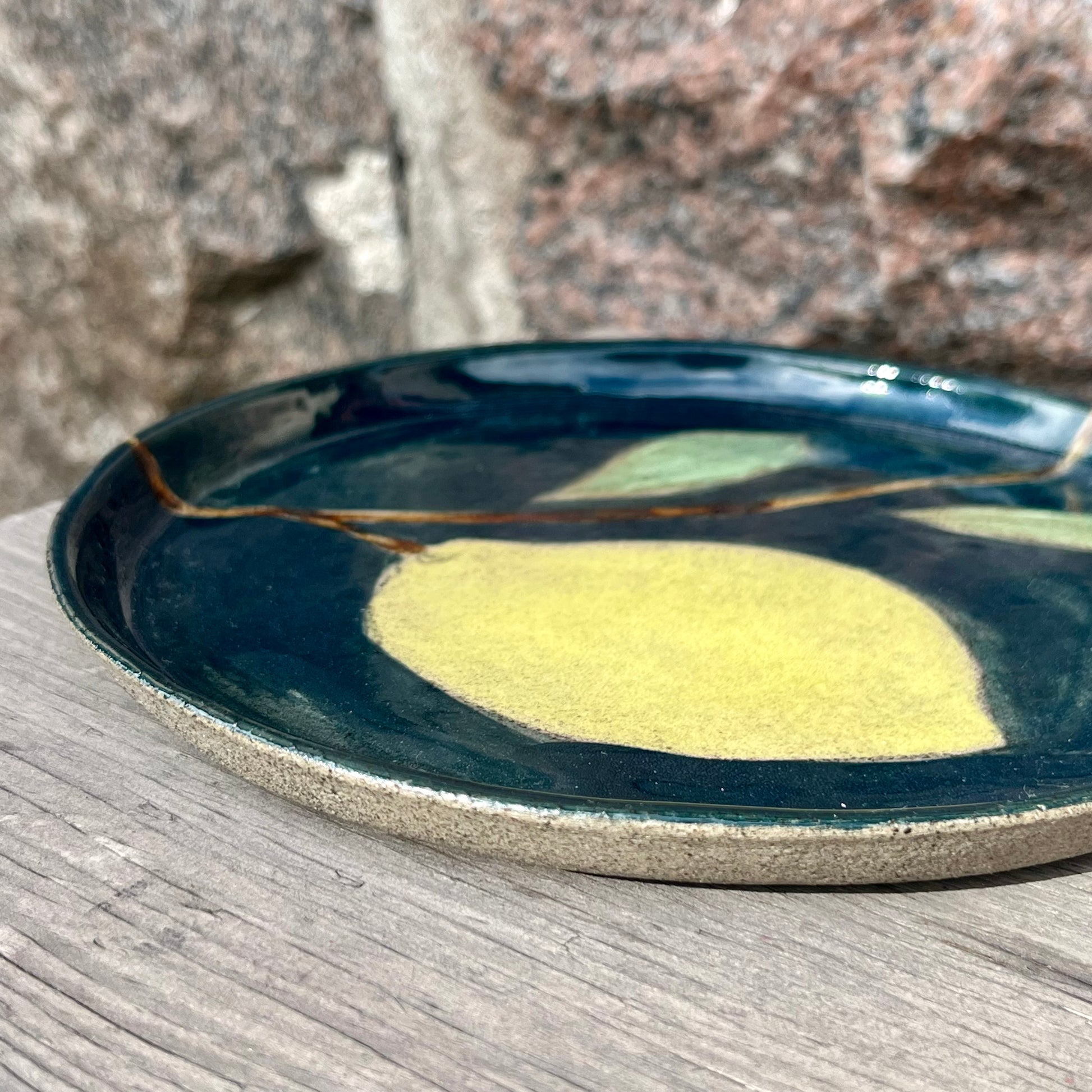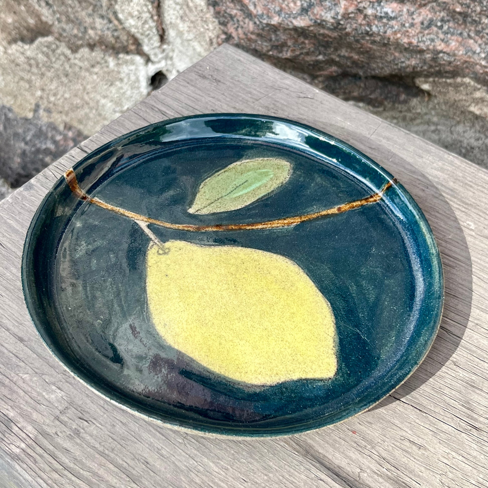 Maarit Lassilan käsin valmistama Cilla-sarjan pyöreä leipälautanen. Mikron, uunin ja astianpesukoneen kestävä.