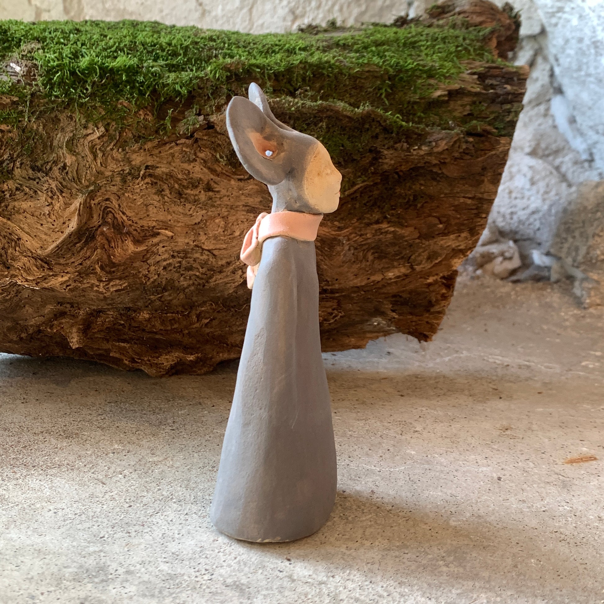 Maarit Lassilan valmistama uniikki, hyvän mielen hahmo. Lasitettua keramiikkaa.