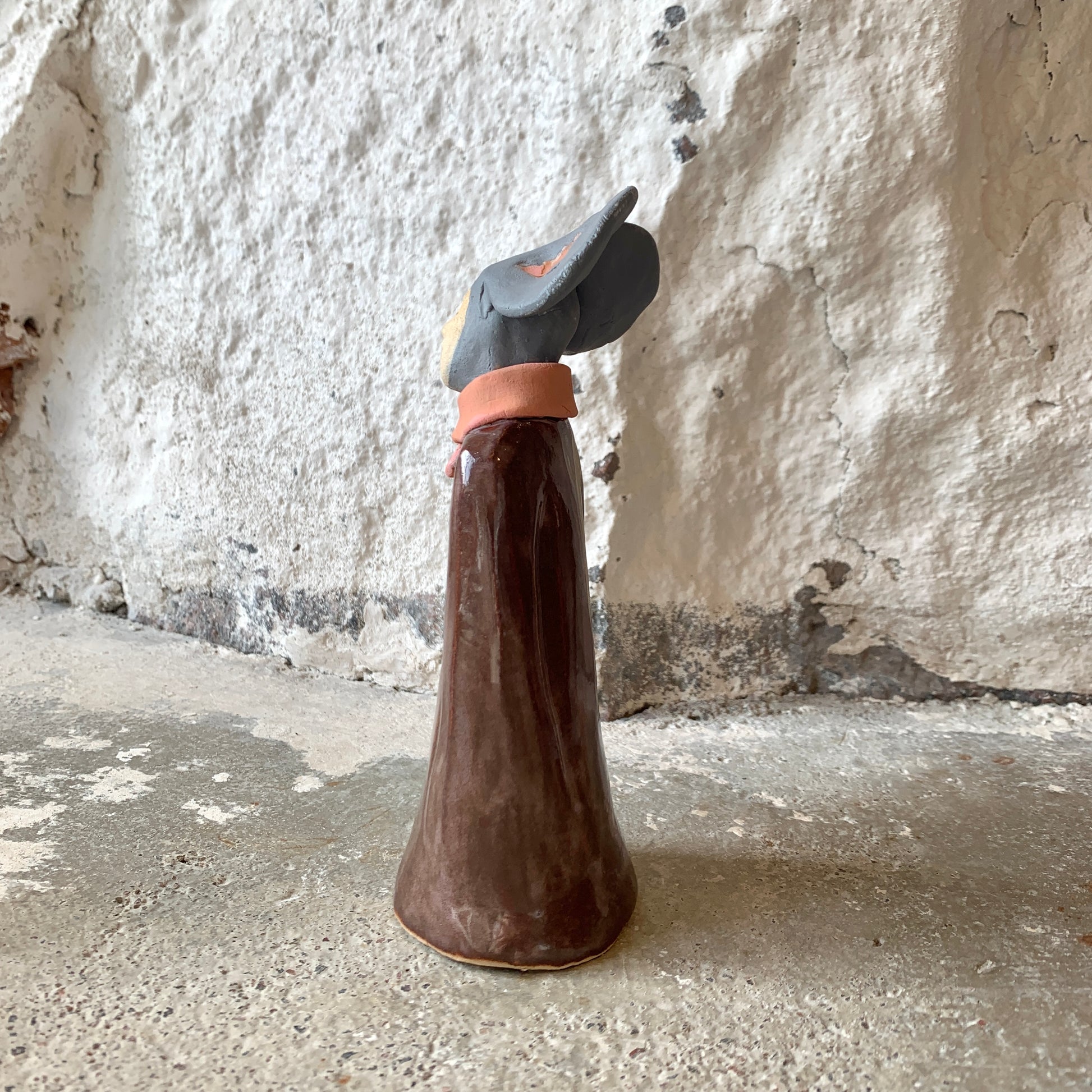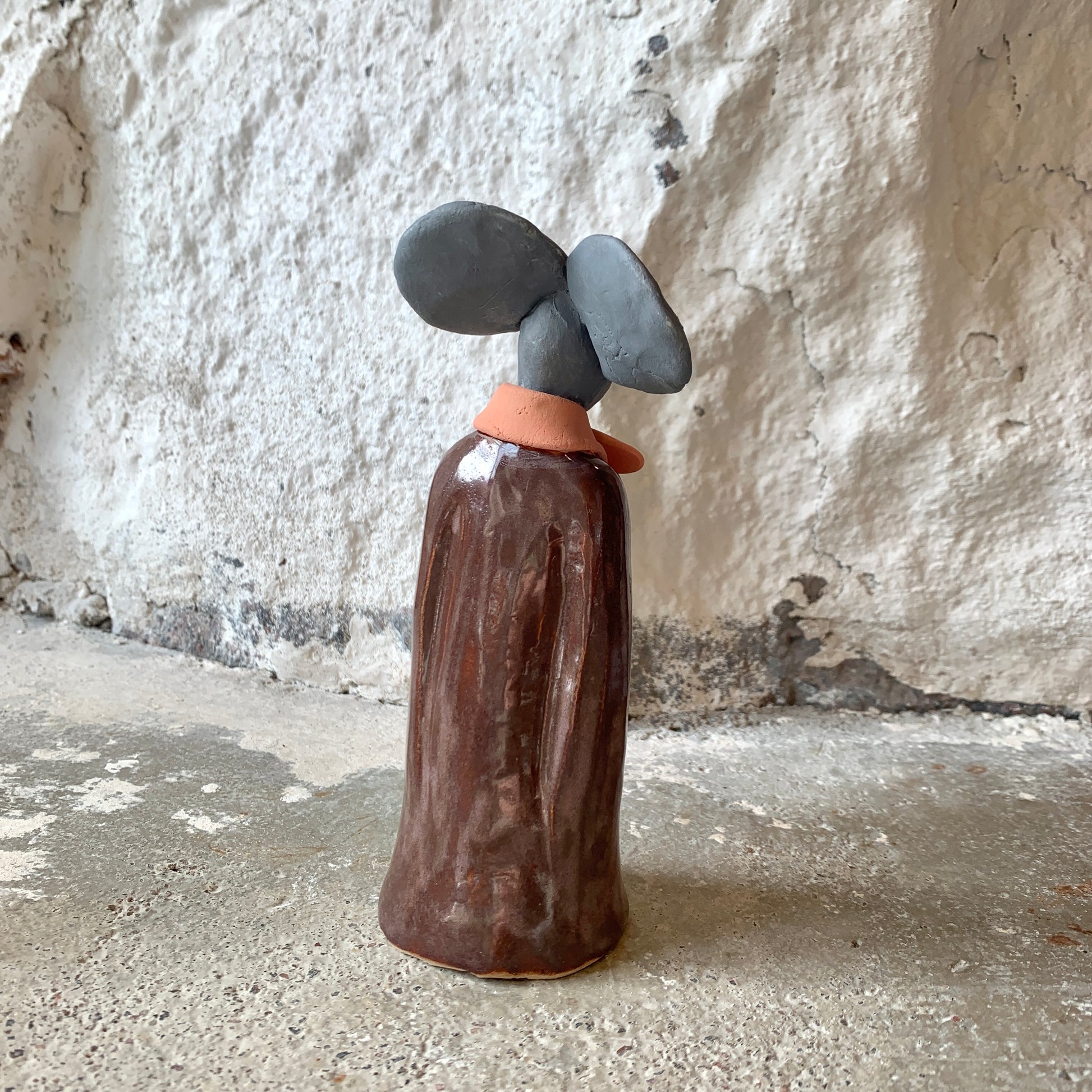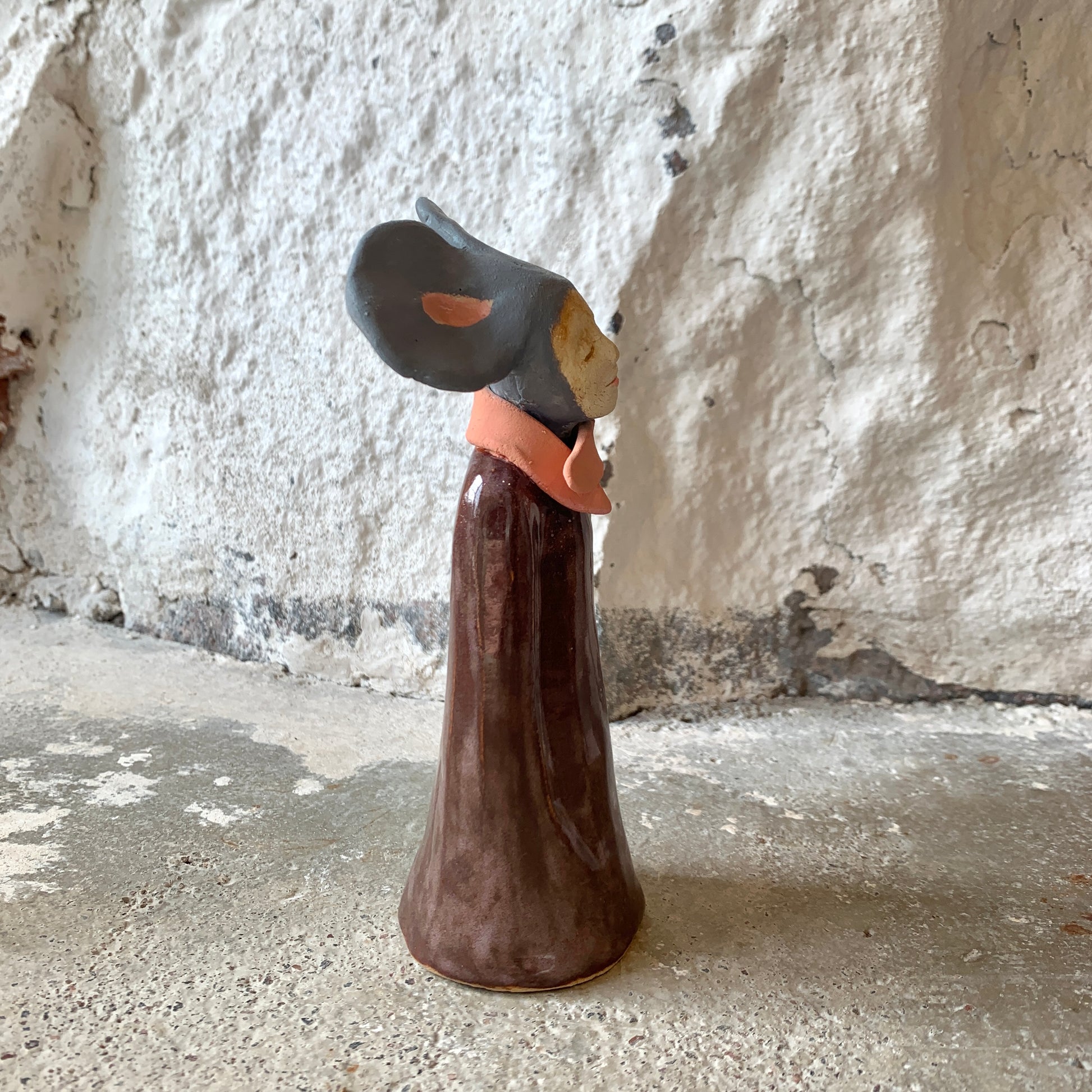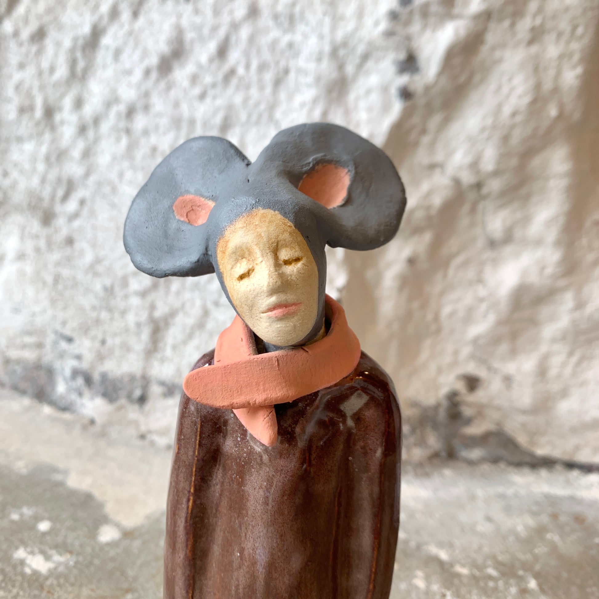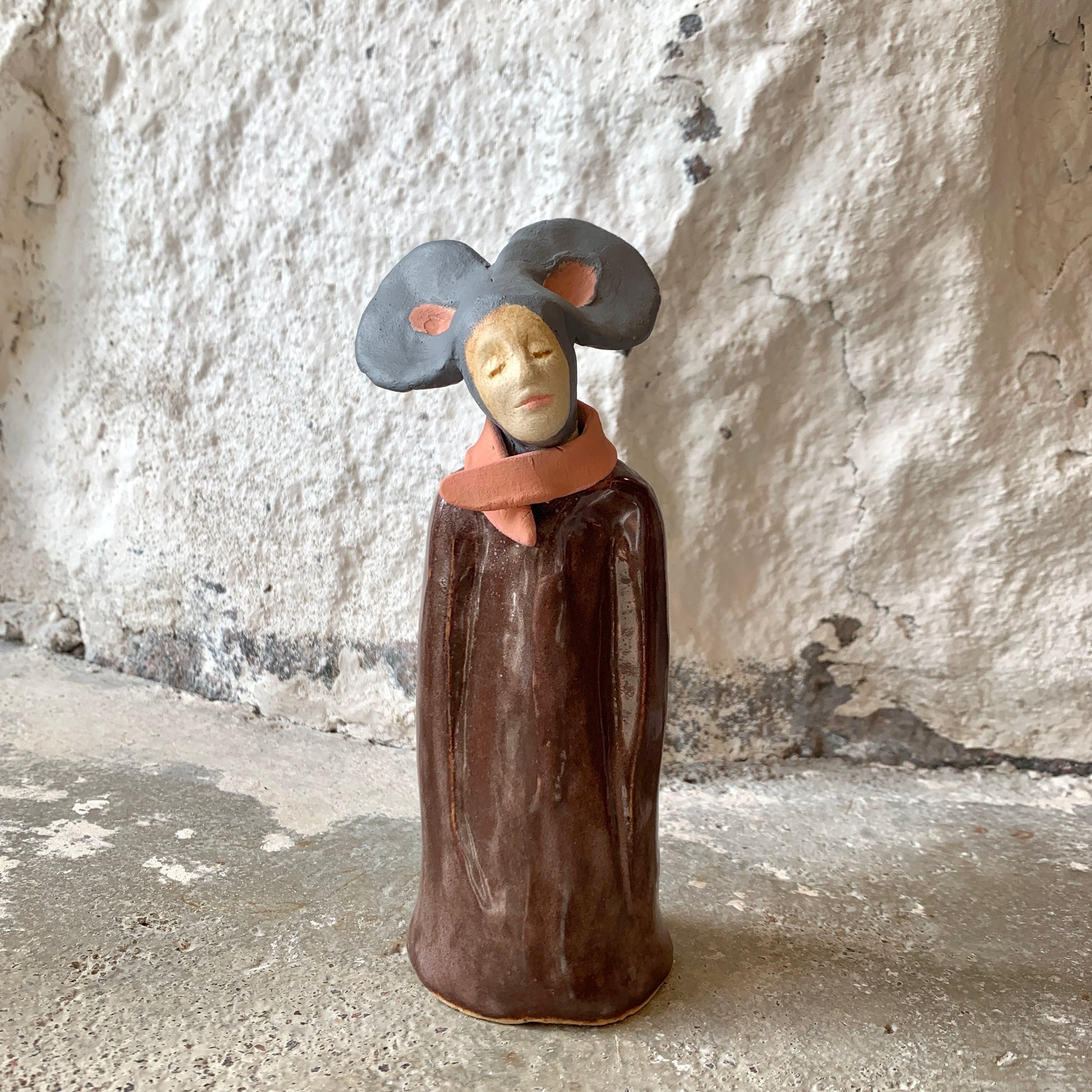 Maarit Lassilan valmistama uniikki, hyvän mielen hahmo. Lasitettua keramiikkaa.