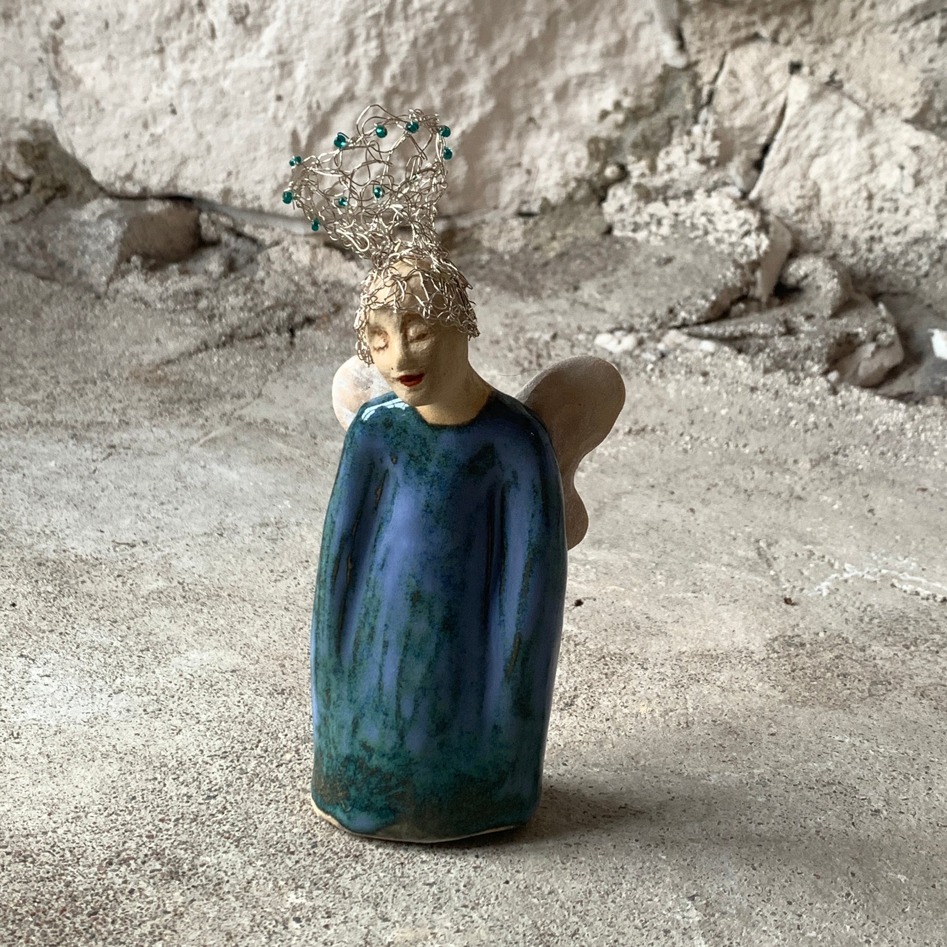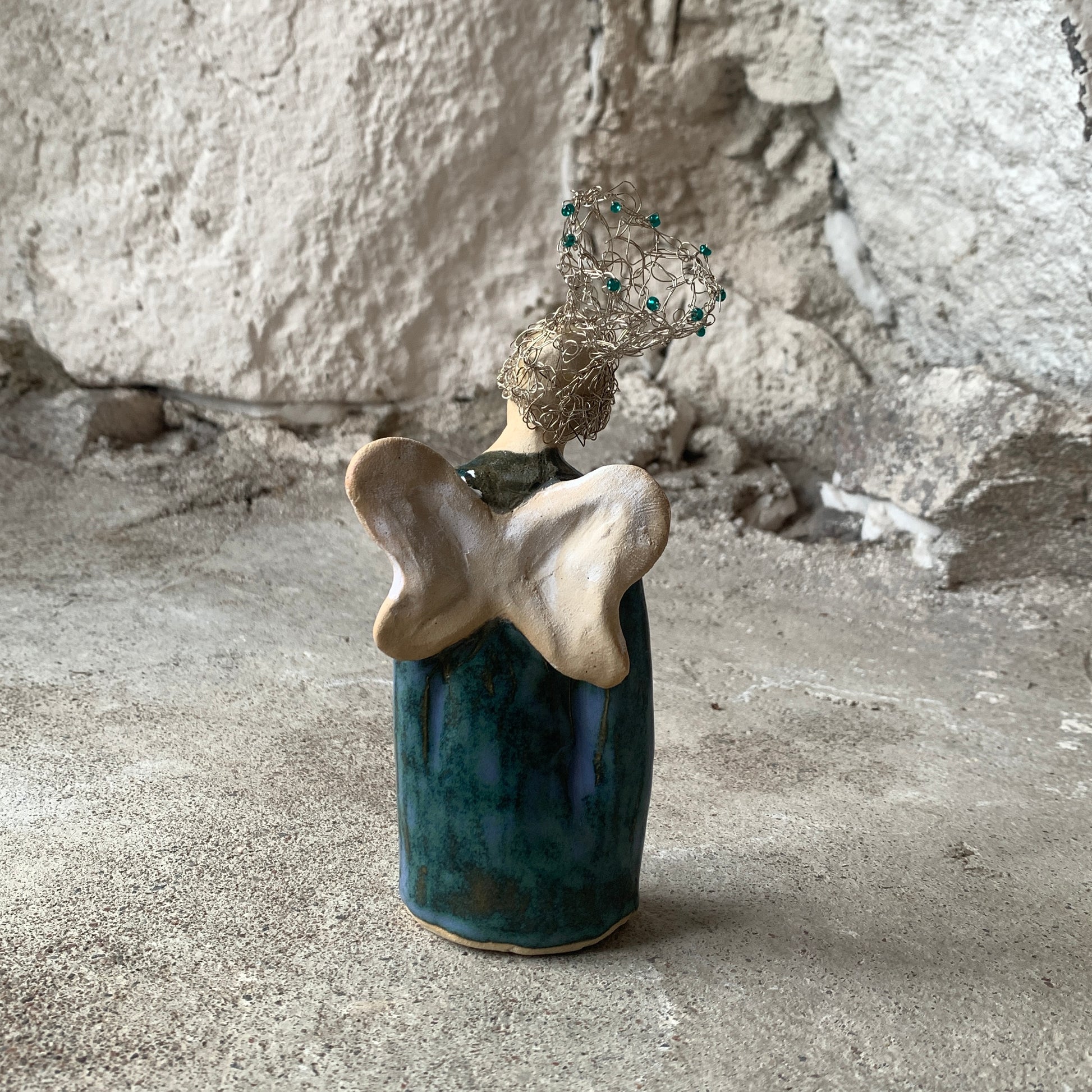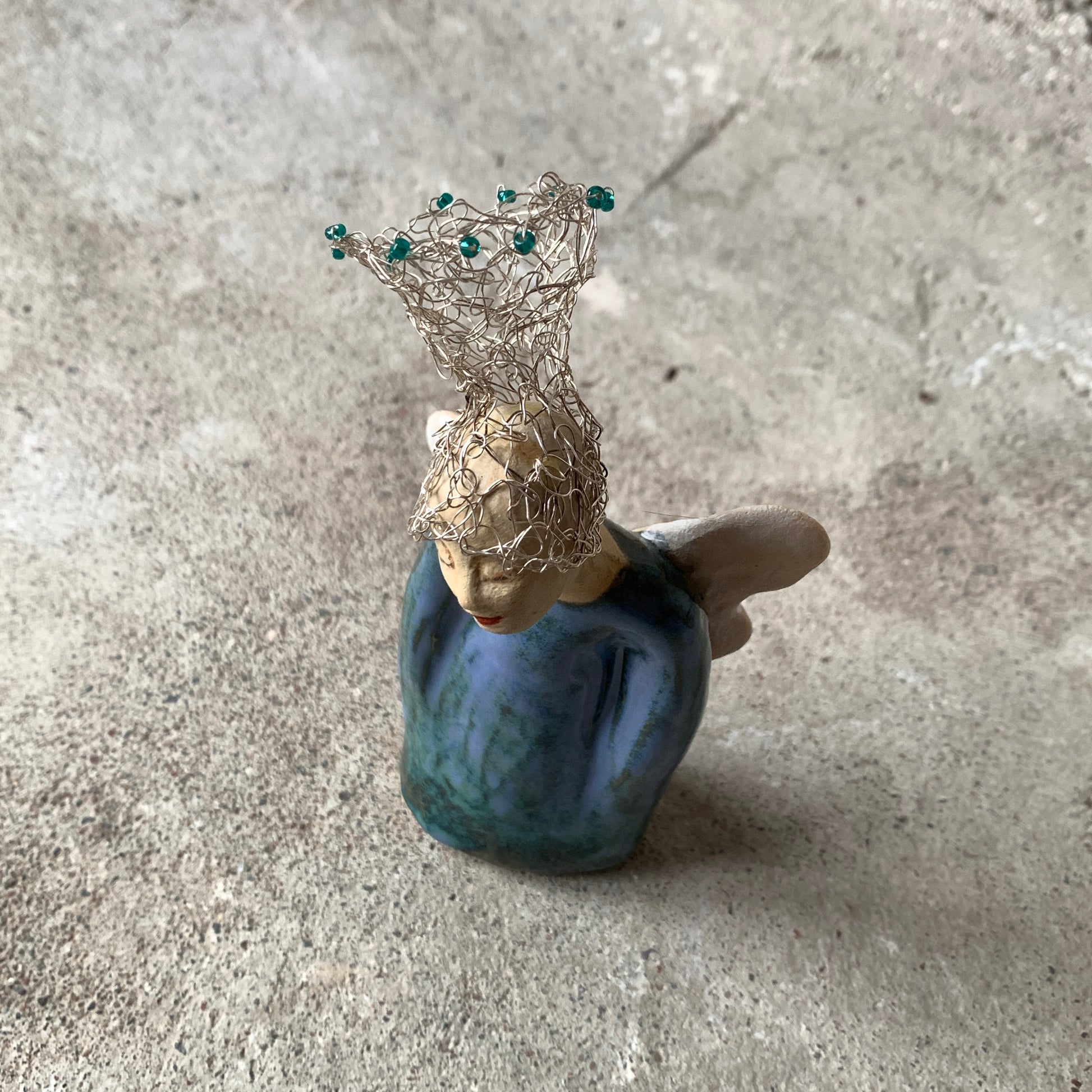 Maarit Lassilan valmistama uniikki, hyvän mielen hahmo. Lasitettua keramiikkaa.