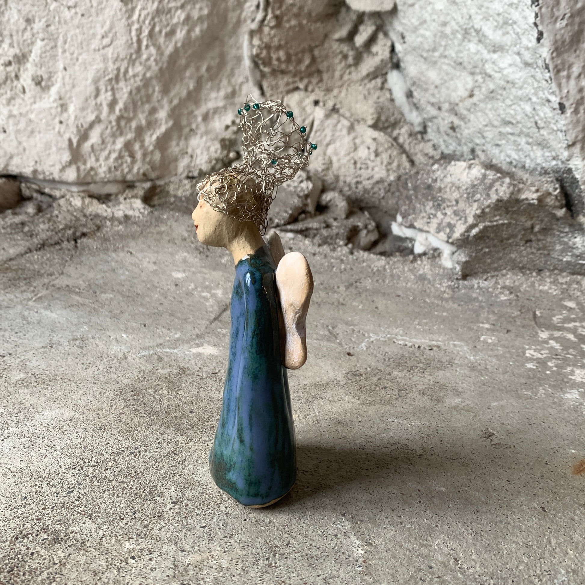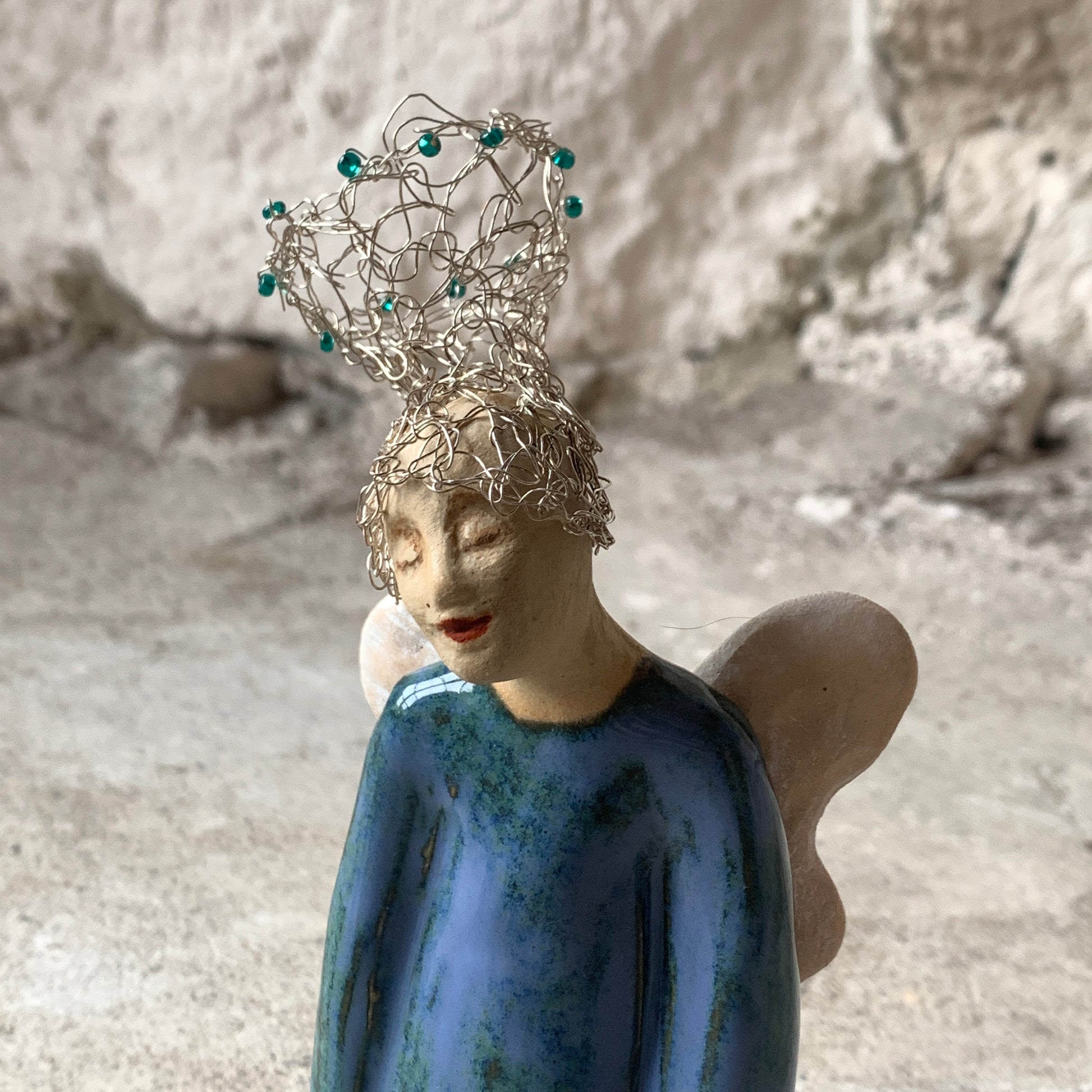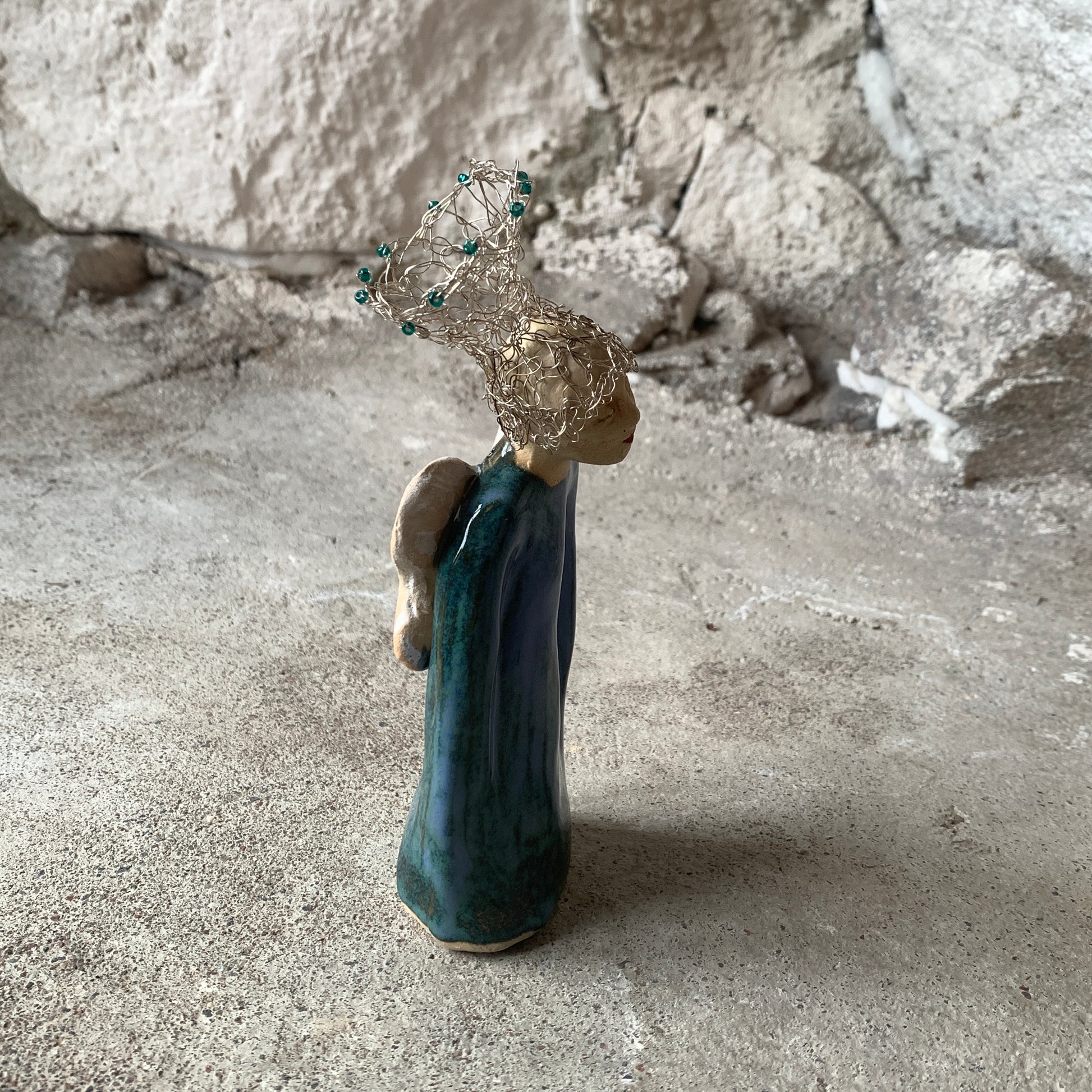 Maarit Lassilan valmistama uniikki, hyvän mielen hahmo. Lasitettua keramiikkaa.