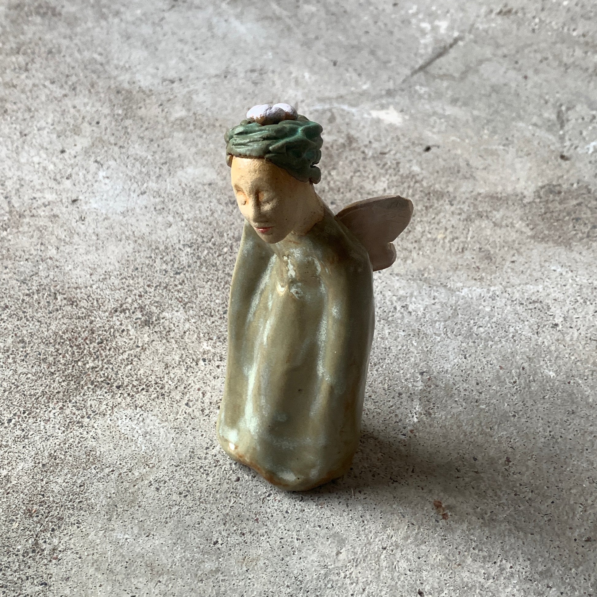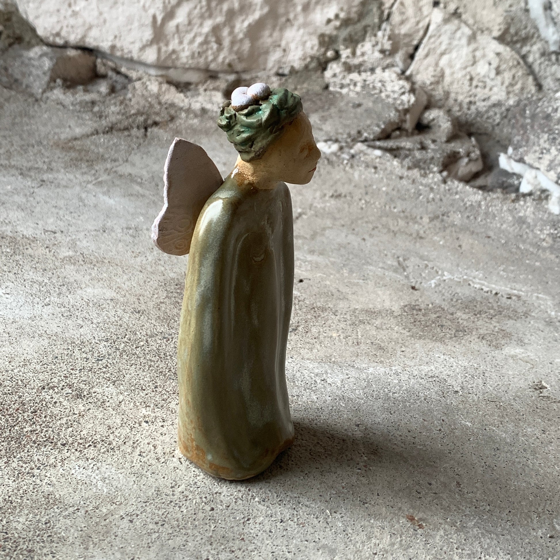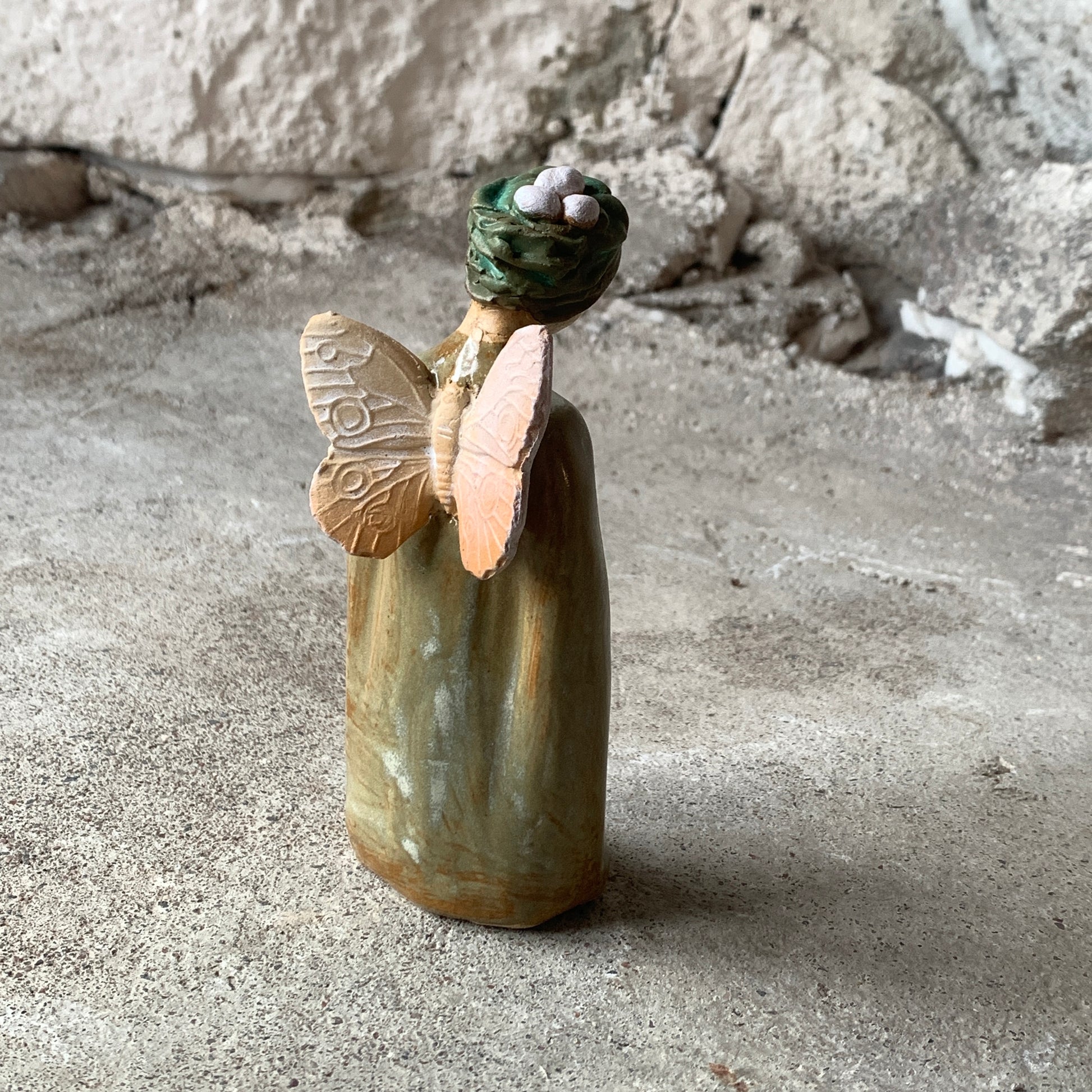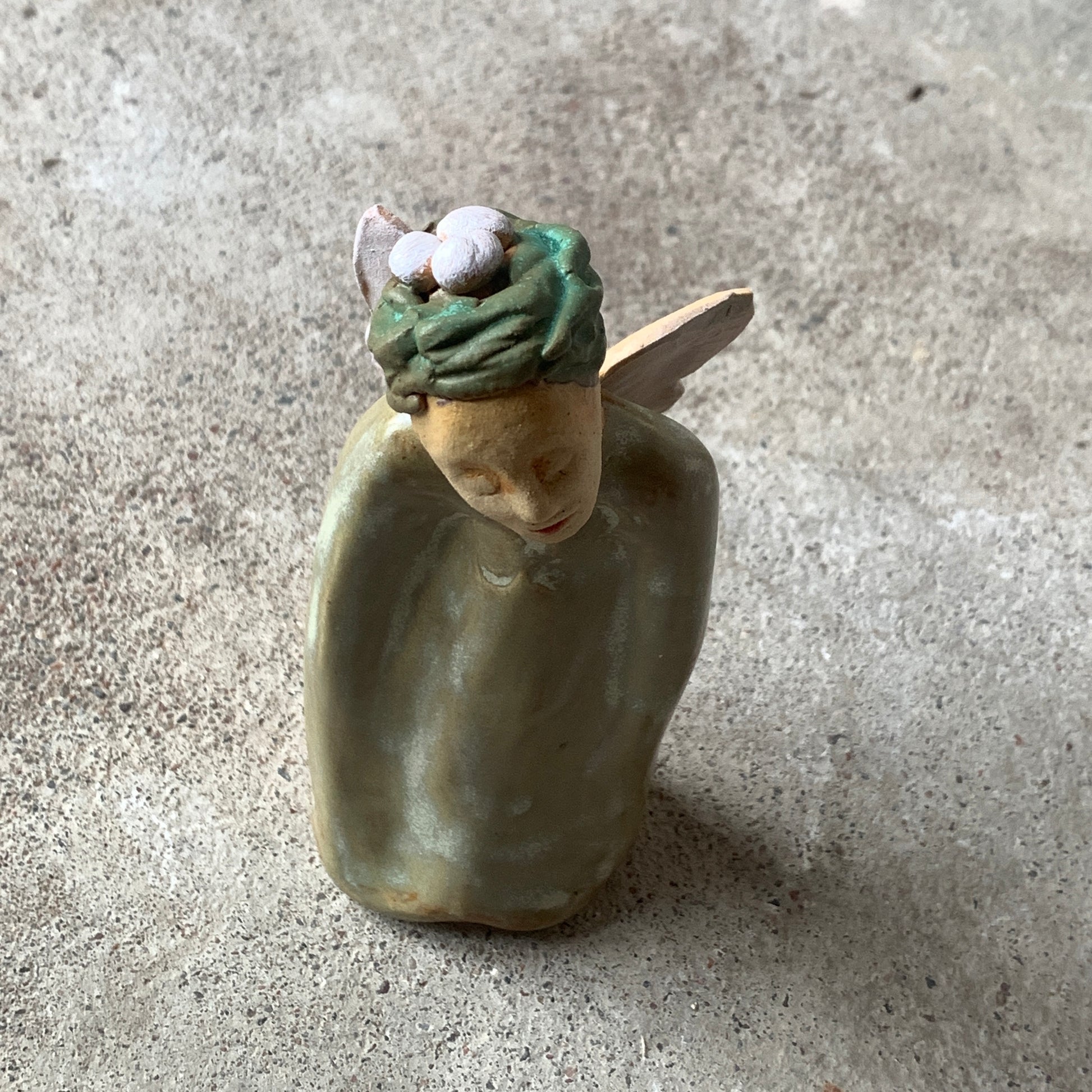 Maarit Lassilan valmistama uniikki, hyvän mielen hahmo. Lasitettua keramiikkaa.