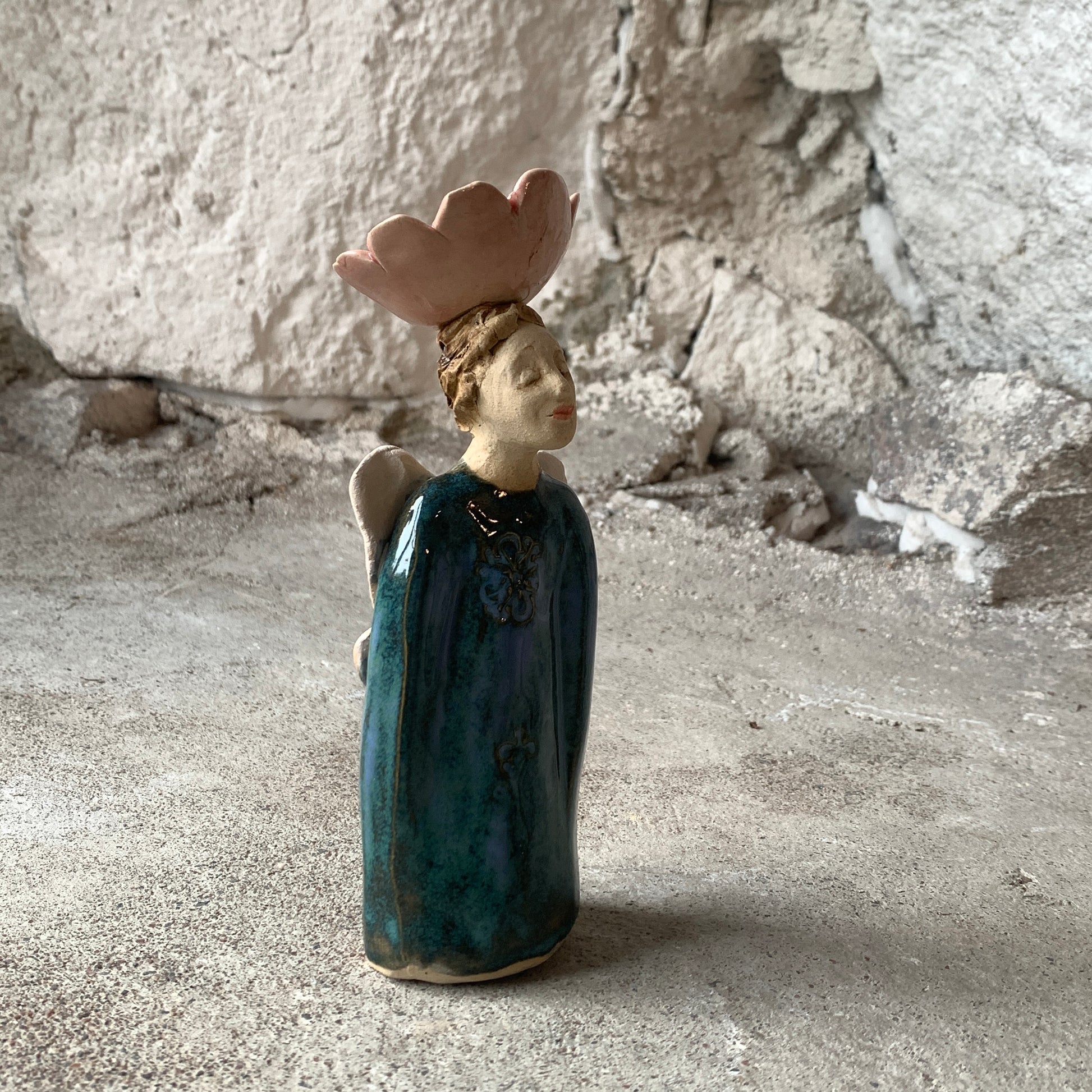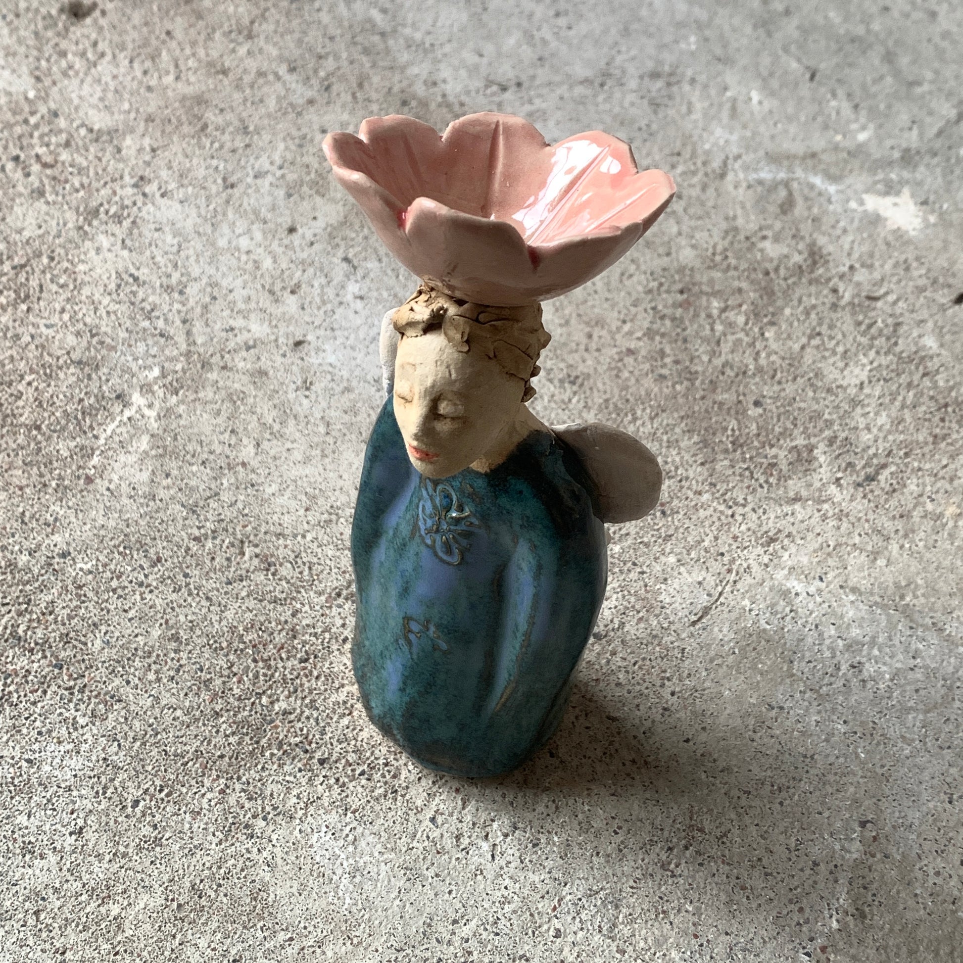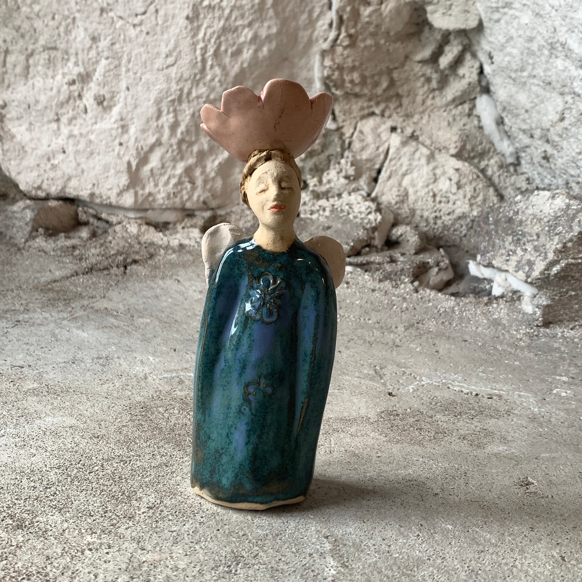 Maarit Lassilan valmistama uniikki, hyvän mielen hahmo. Lasitettua keramiikkaa.