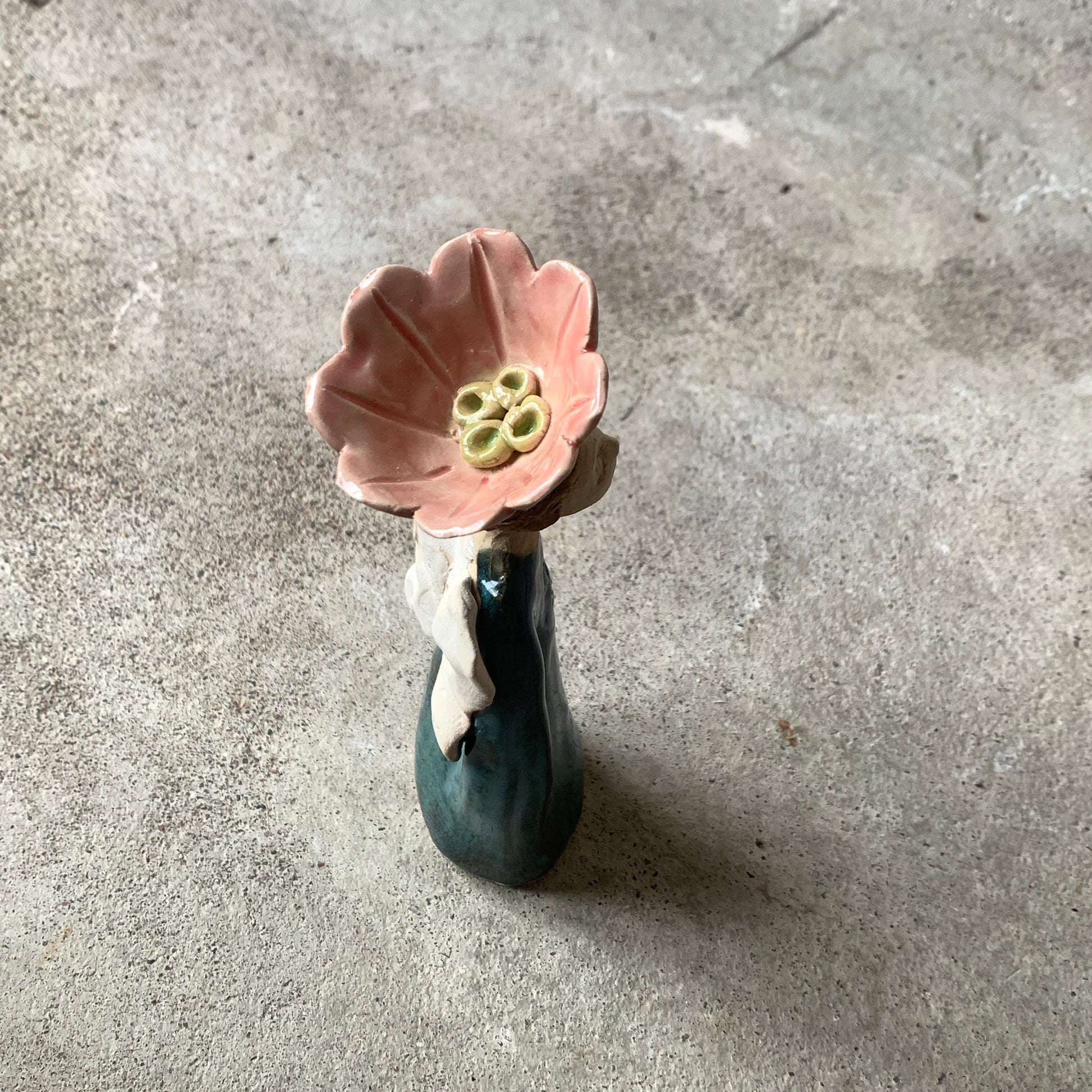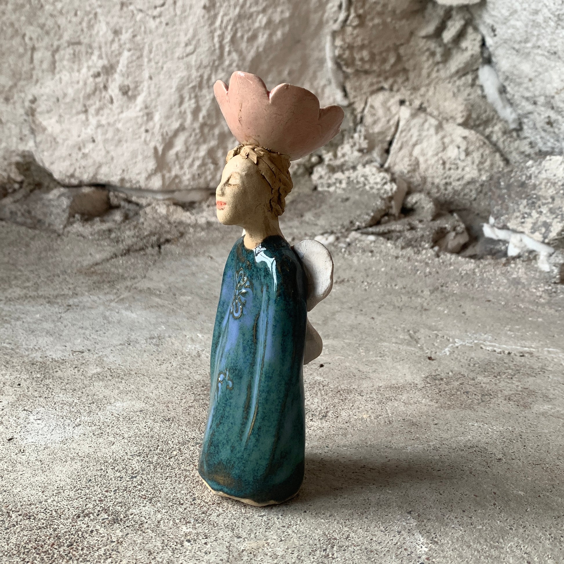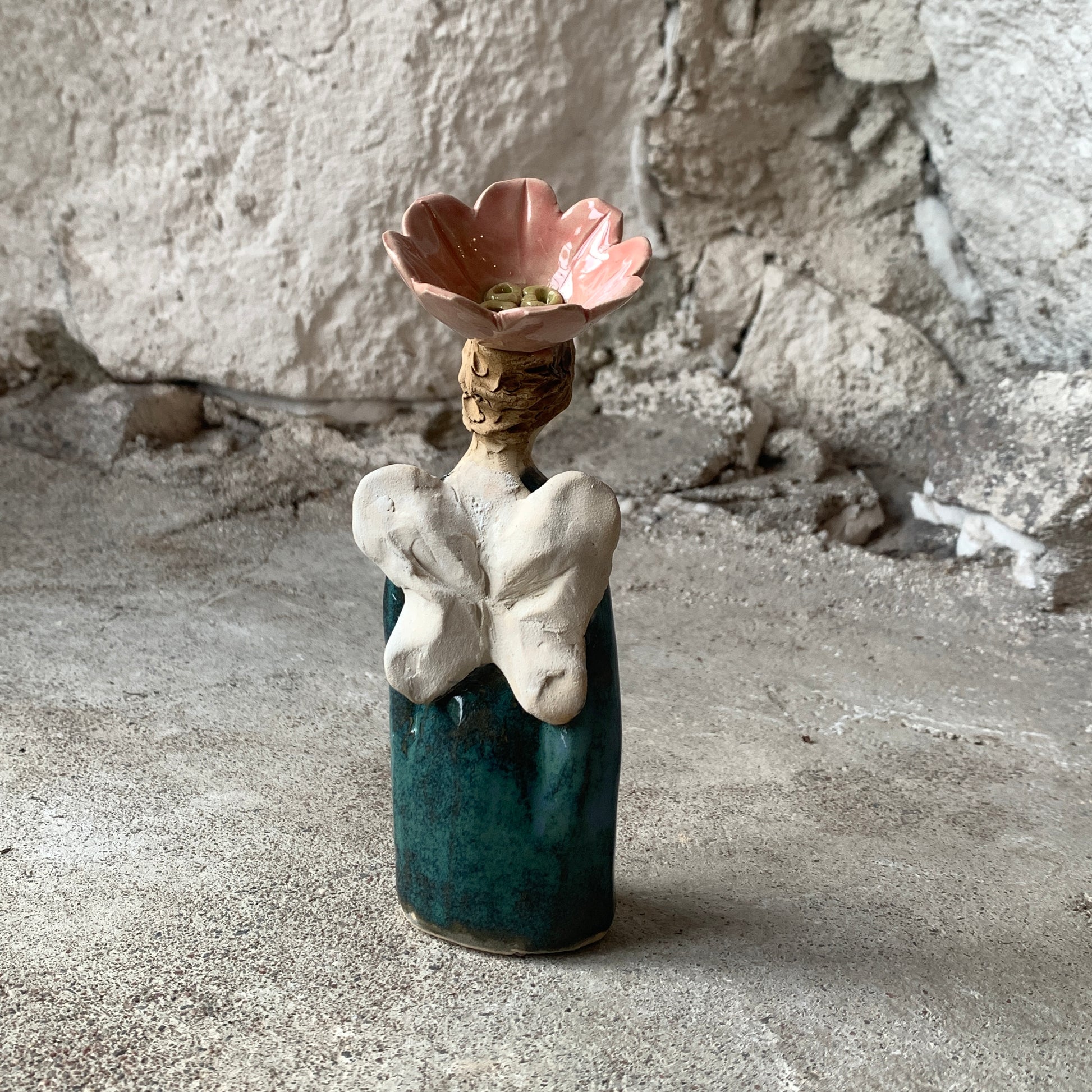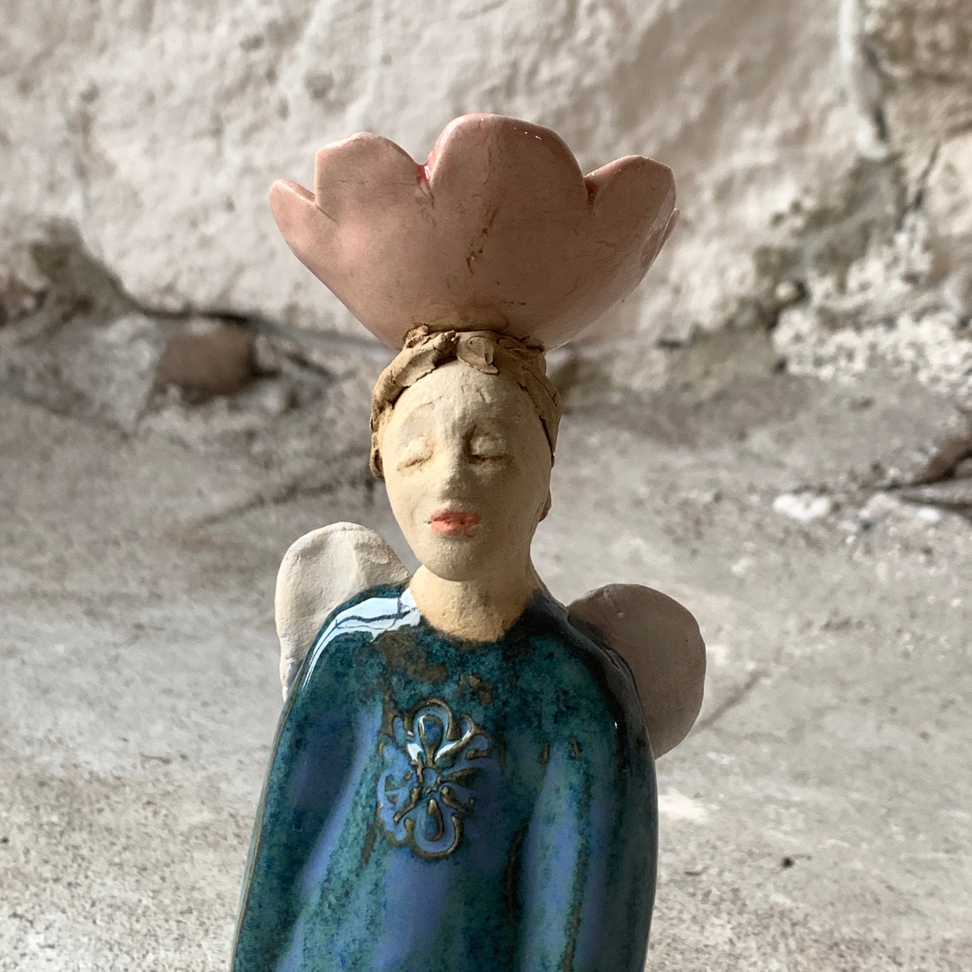 Maarit Lassilan valmistama uniikki, hyvän mielen hahmo. Lasitettua keramiikkaa.