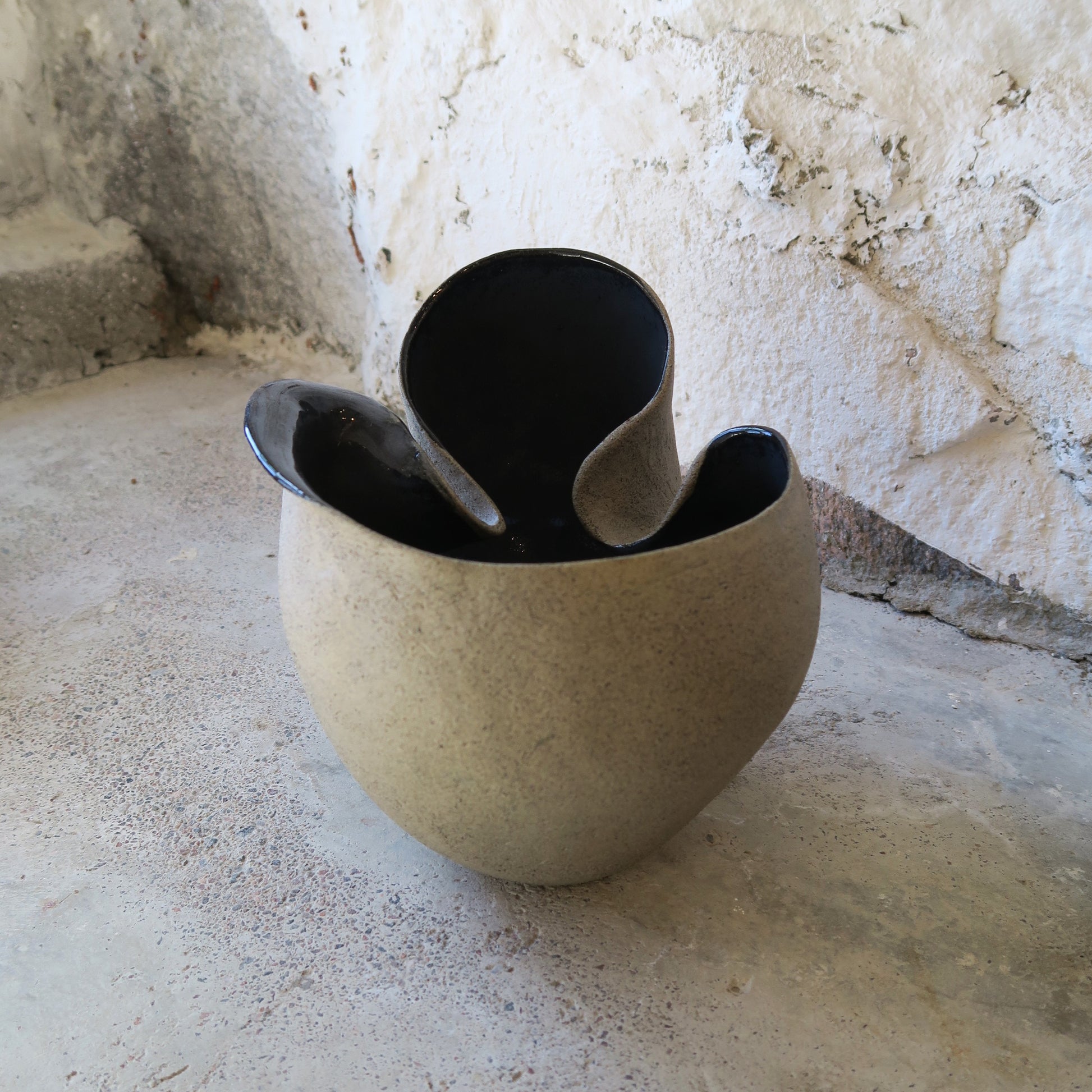 Maarit Lassilan käsin tekemä uniikki maljakko. Lasitettua keramiikkaa.