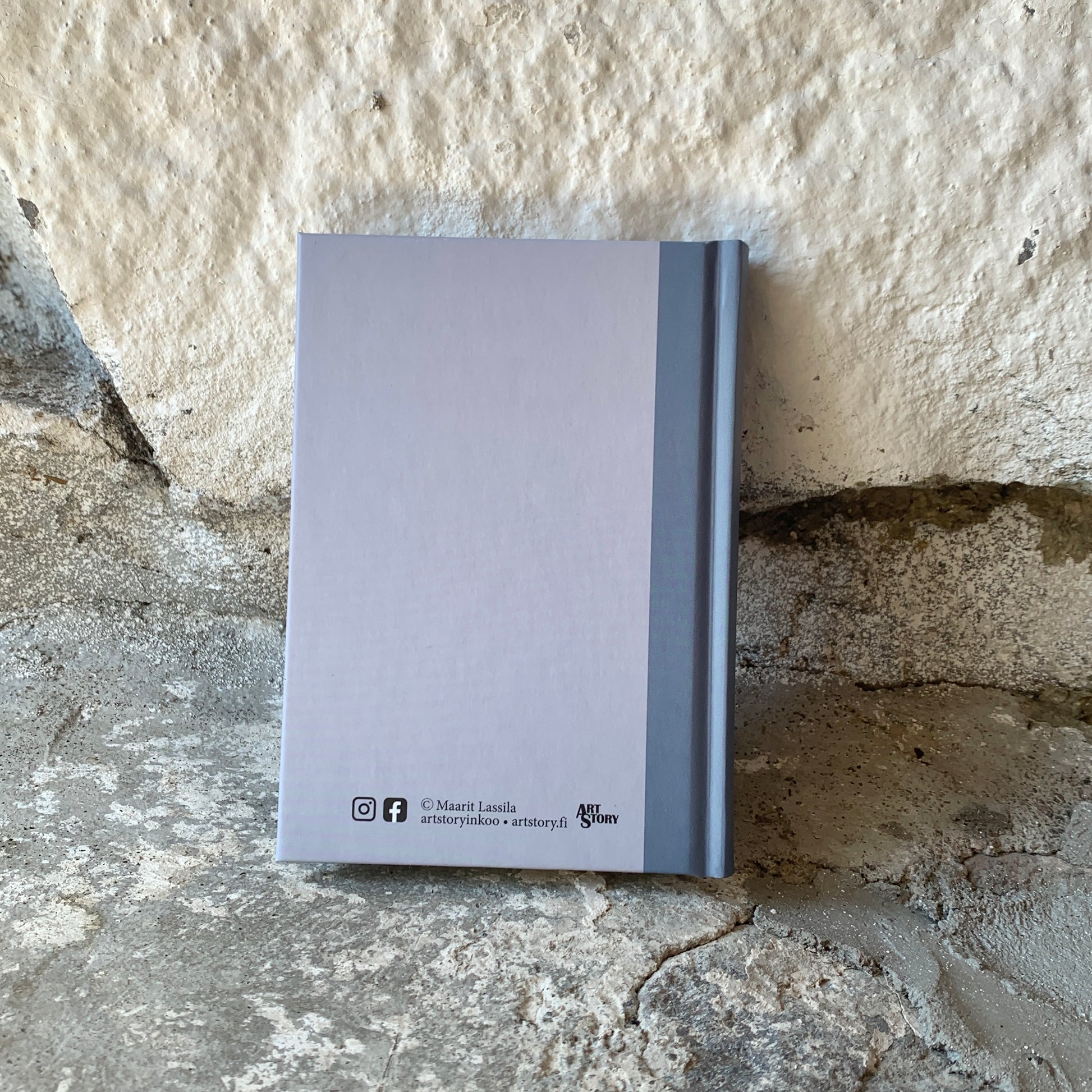 Kovakantinen muistikirja. Kannen kuosi on Maarit Lassilan maalauksesta painettu kotimaassa.Tyhjät sivut odottavat juuri sinun tarinoita, runoja ja luonnoksia, tai vaikka vieraiden lämpimiä viestejä vieraskirjana.