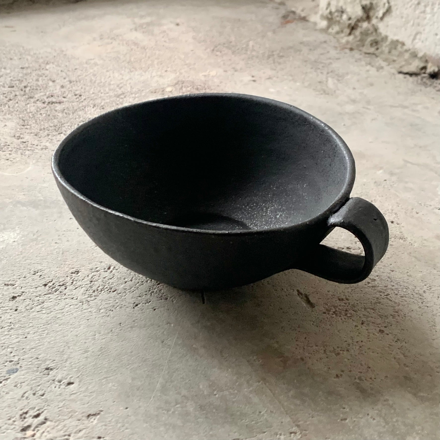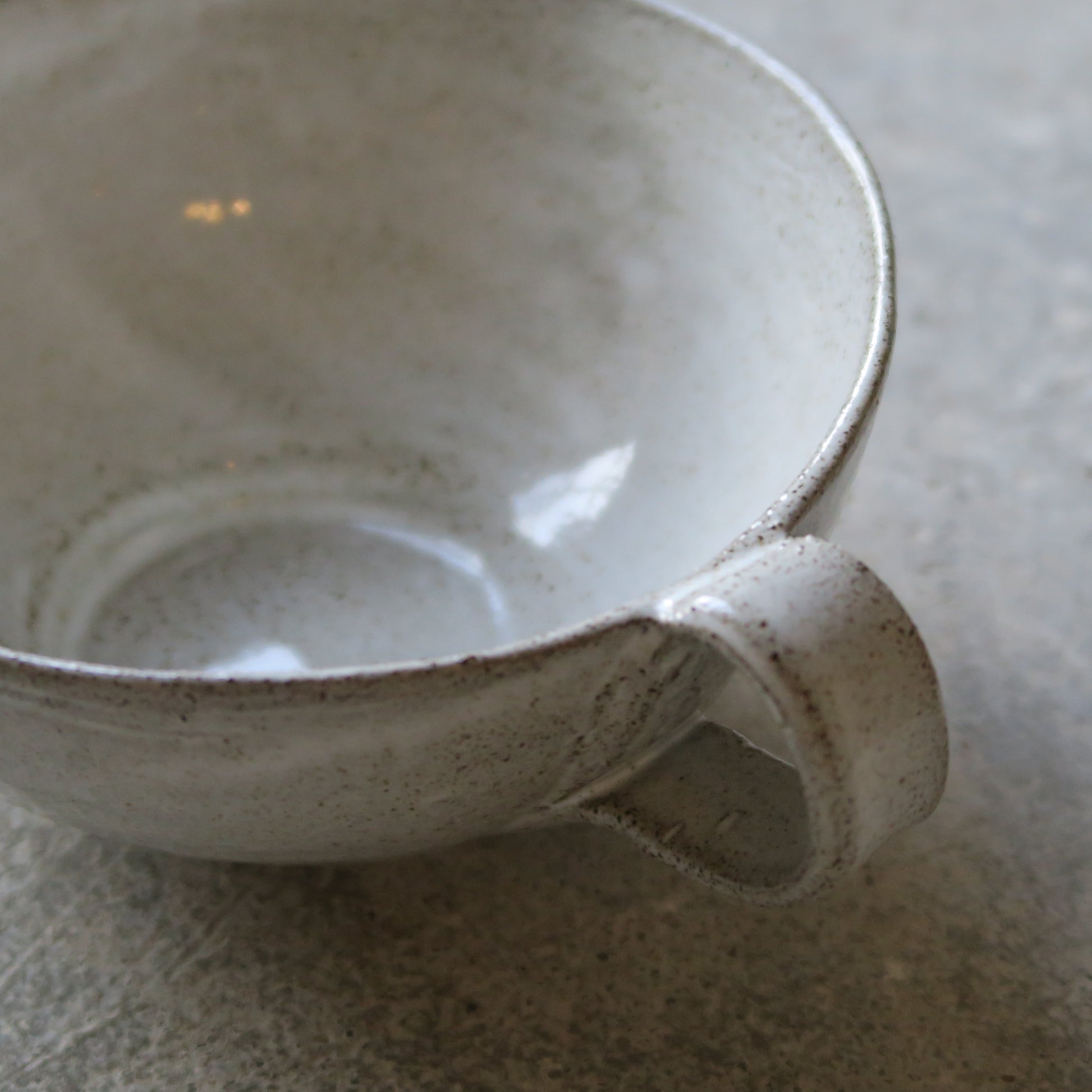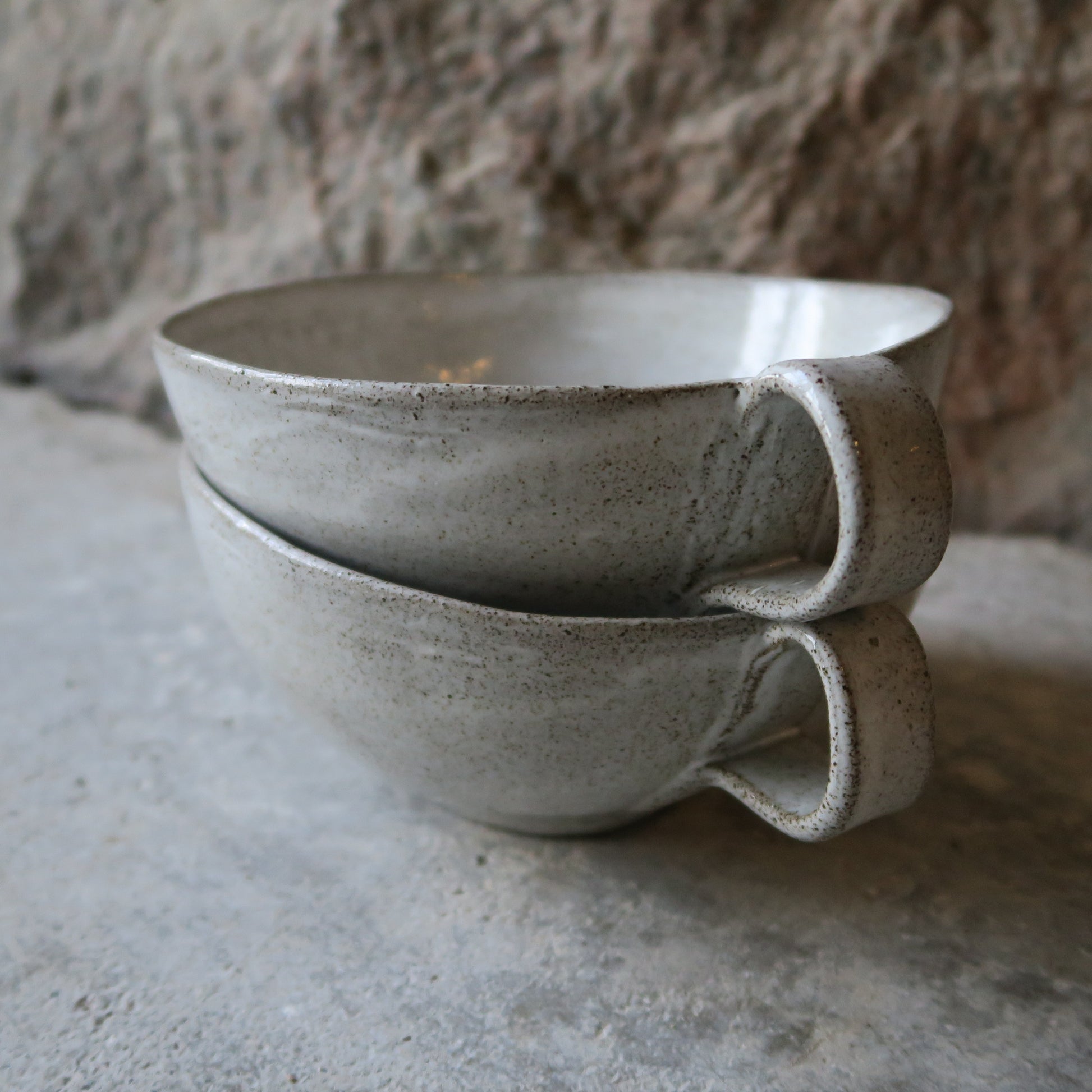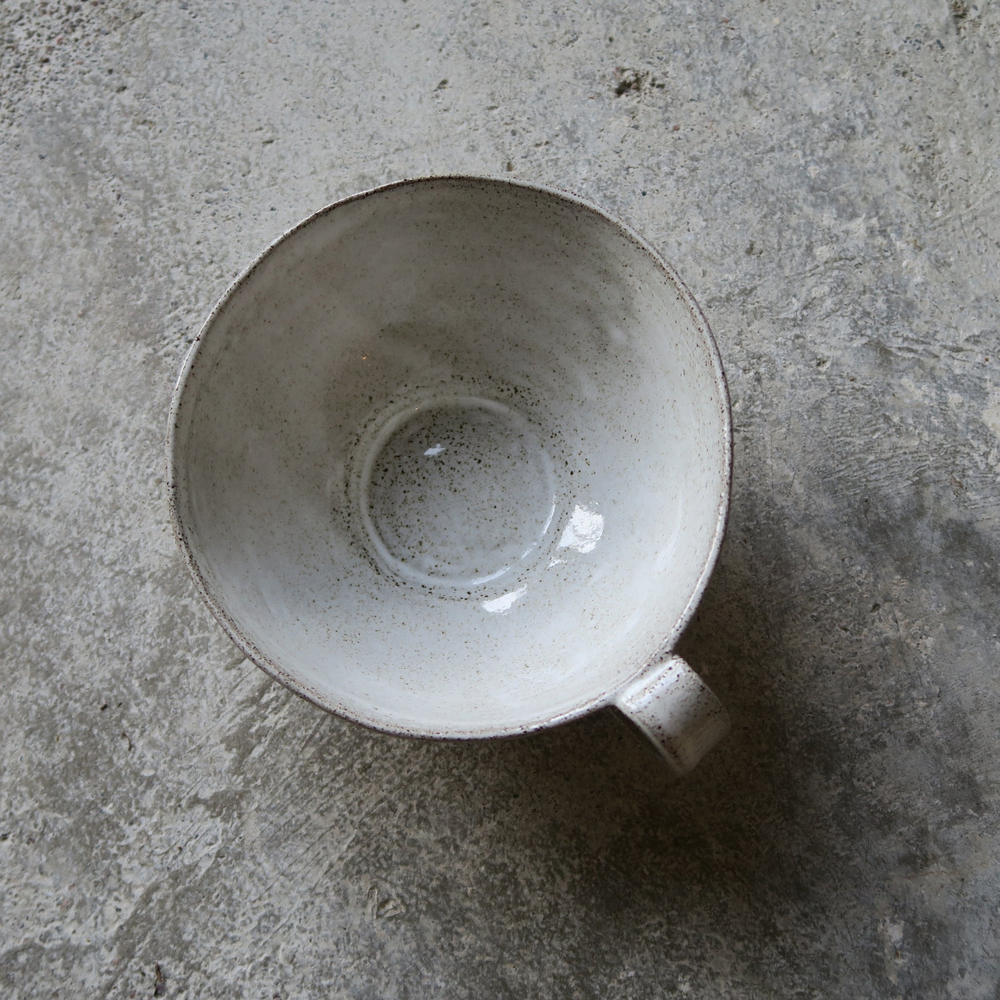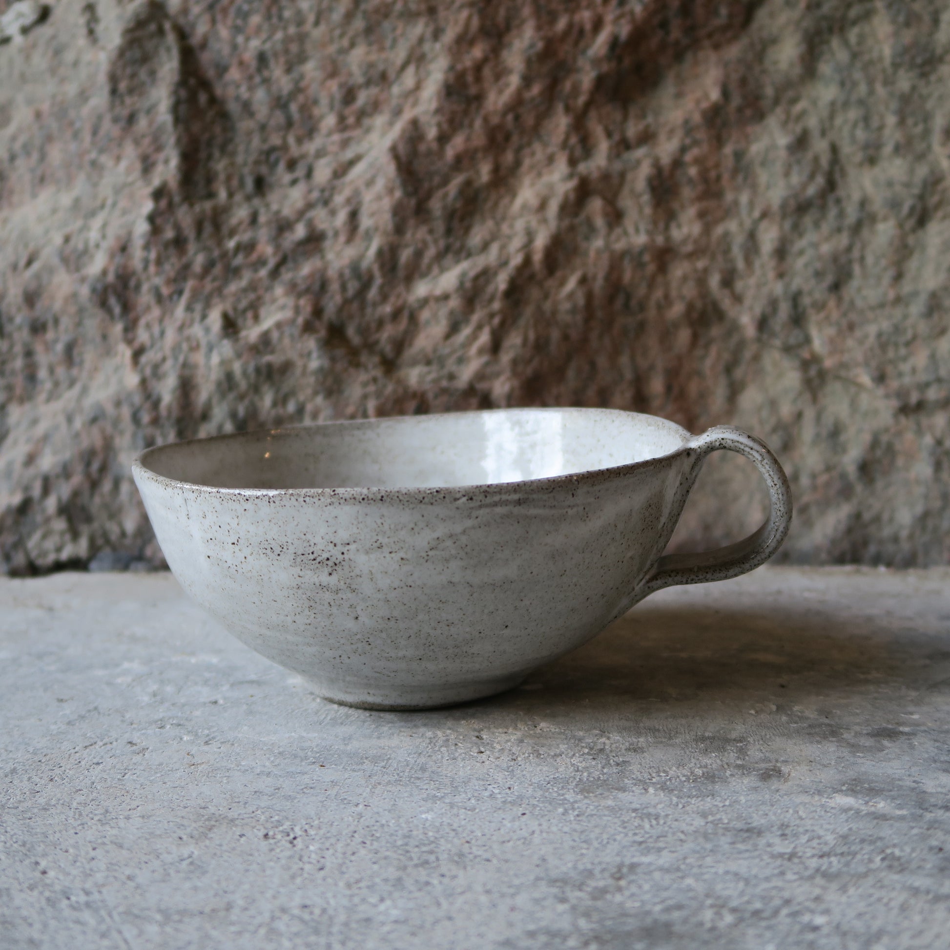 Maarit Lassilan käsin valmistama suuri latte/teemuki. Voi käyttää myös kulhona. Valmistettu kivitavarasta, mikä kestää uunin, mikron ja astianpesukoneen. Saatavana valkoisella kiiltävällä lasitteella sekä mattamustana.