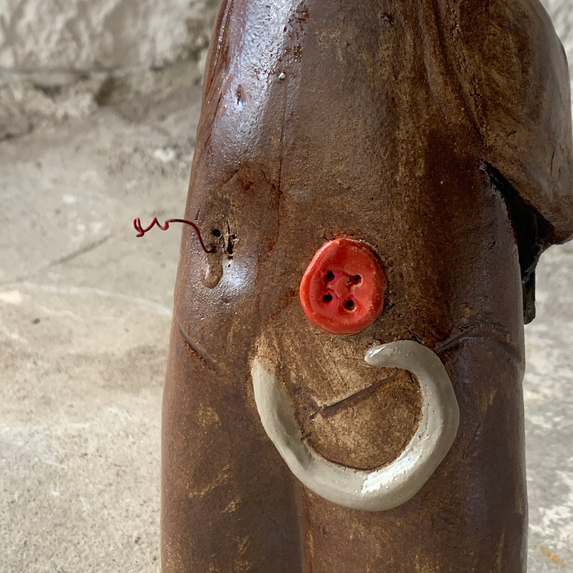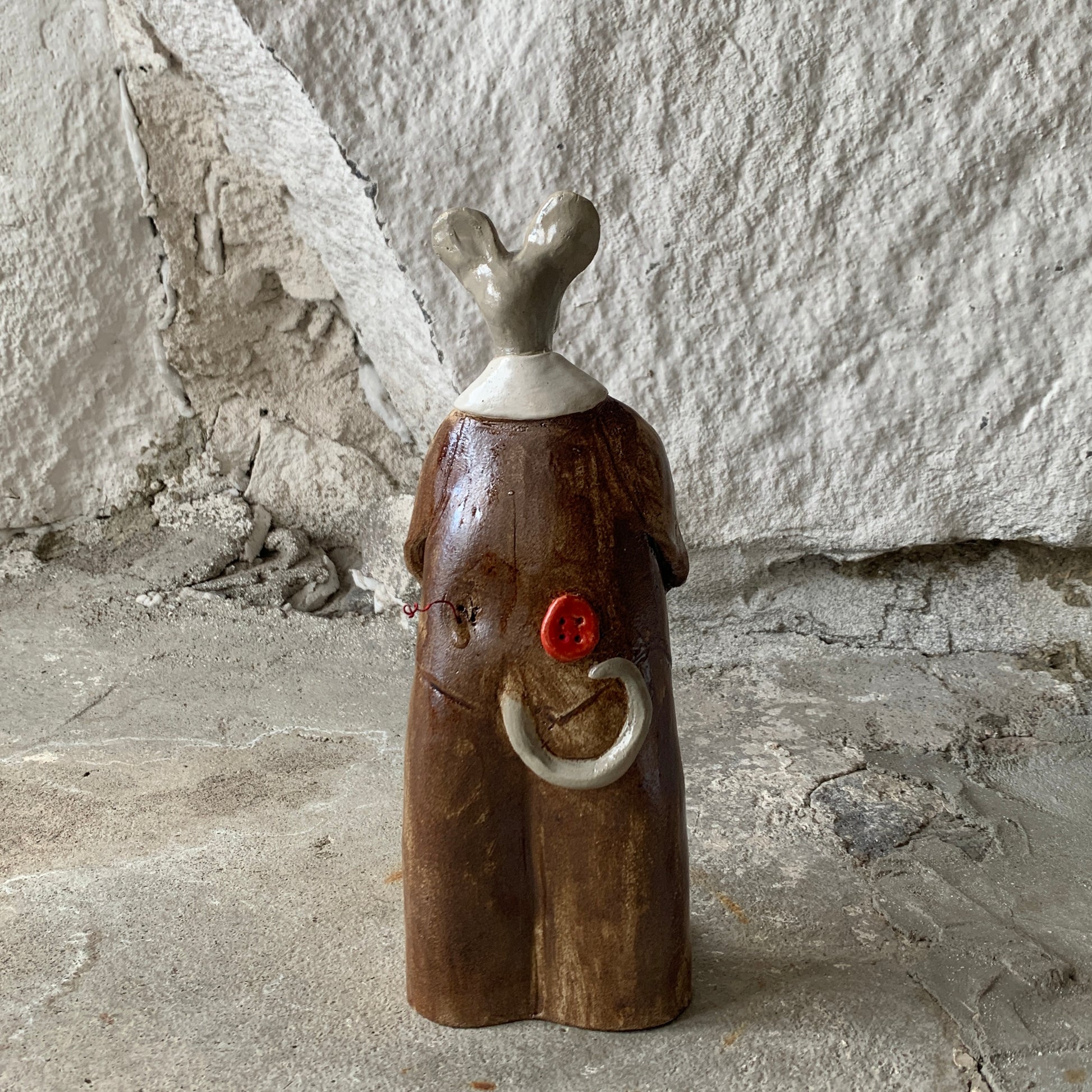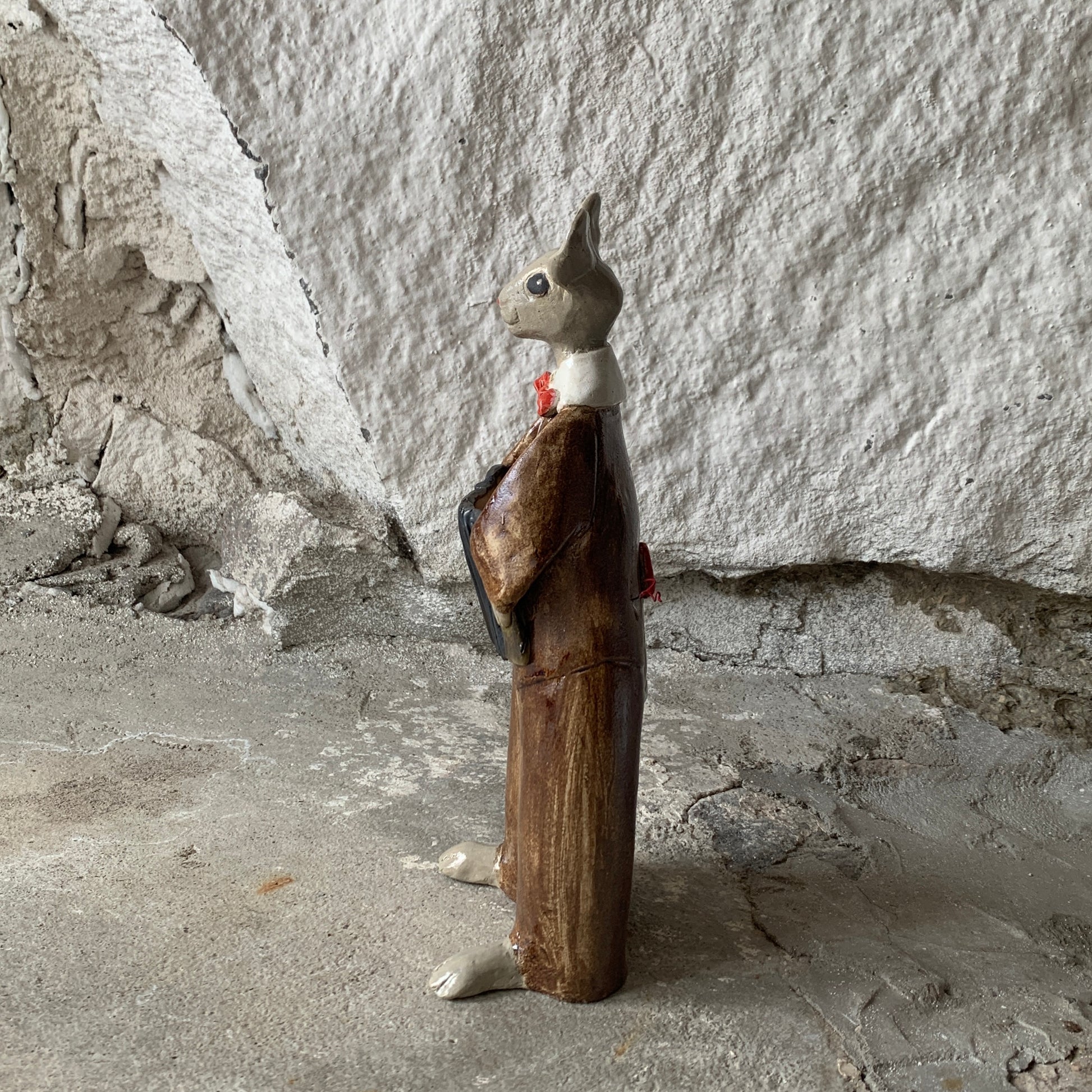 Maarit Lassilan uniikki keraaminen haitaria soittava hiiri-veistos.