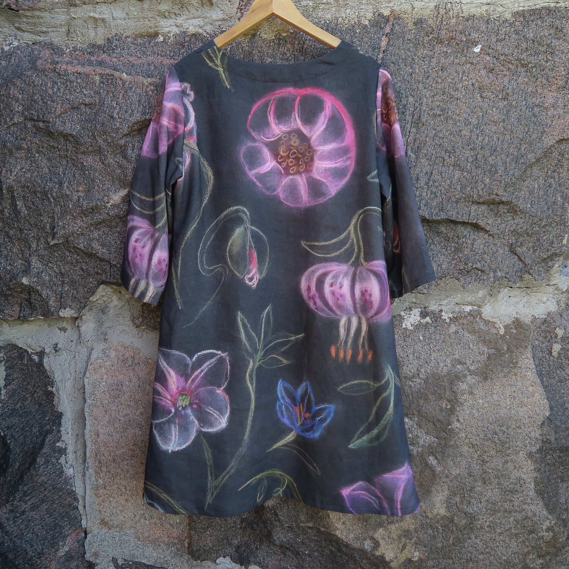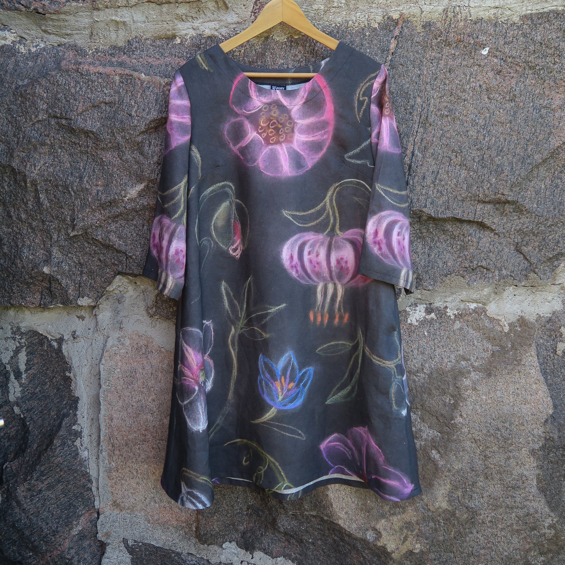 Ajaton pellavamekko on vaatekaapin kulmakivi. Mekot valmistetaan kolmen pienyrittäjän yhteistyönä, kokonaan kotimaisin voimin. Maarit Lassila (Art Story) ja Liisa Summanen (Likiz) ja Tiina Nyman (Pixie Dust) suunnittelevat tuotteet yhdessä. Maarit maalaa kuosit, jotka painetaan kankaalle alkuperäisen työn pohjalta. Liisa vastaa kankaiden painotyöstä ja Tiina ompelee mekot Inkoossa.