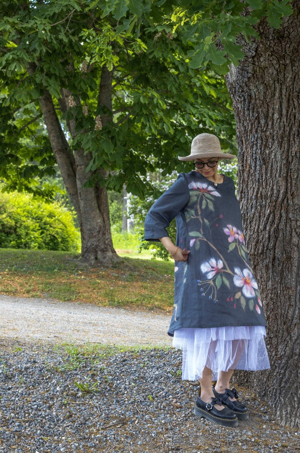 Ajaton pellavamekko on vaatekaapin kulmakivi. Mekot valmistetaan kolmen pienyrittäjän yhteistyönä, kokonaan kotimaisin voimin. Maarit Lassila (Art Story) ja Liisa Summanen (Likiz) ja Tiina Nyman (Pixie Dust) suunnittelevat tuotteet yhdessä. Maarit maalaa kuosit, jotka painetaan kankaalle alkuperäisen työn pohjalta. Liisa vastaa kankaiden painotyöstä ja Tiina ompelee mekot Inkoossa.