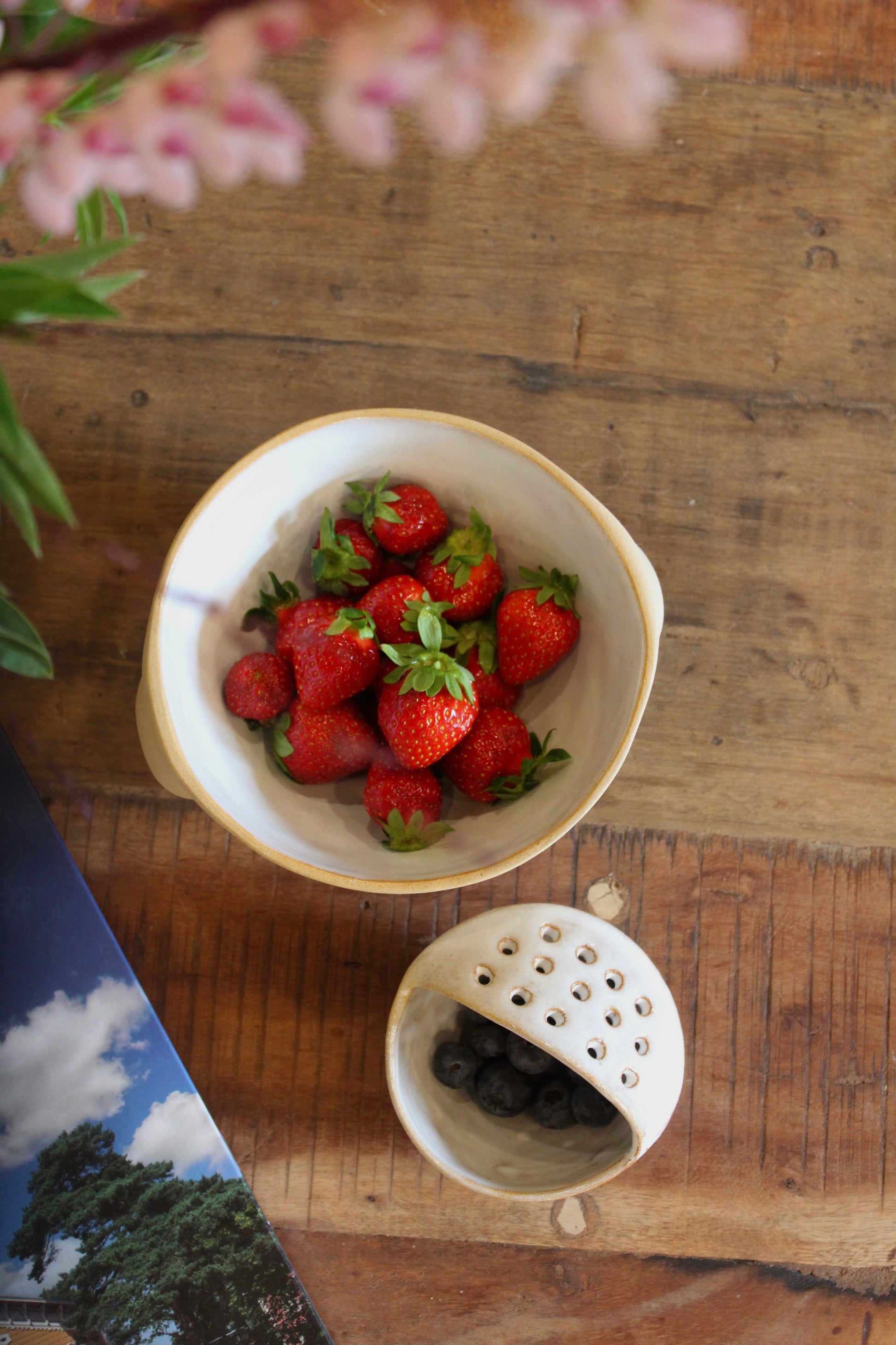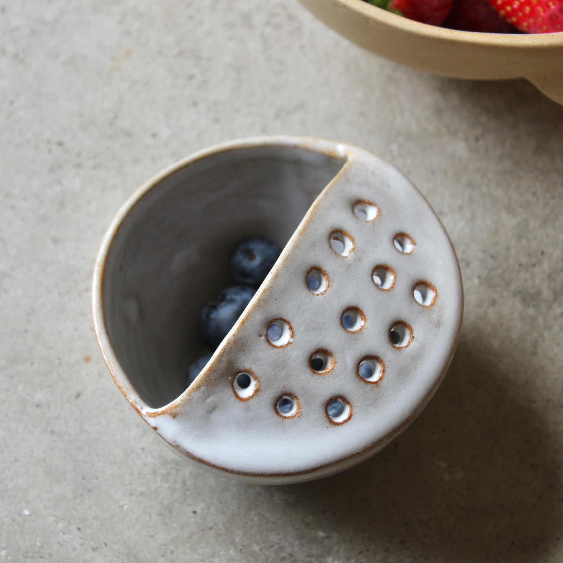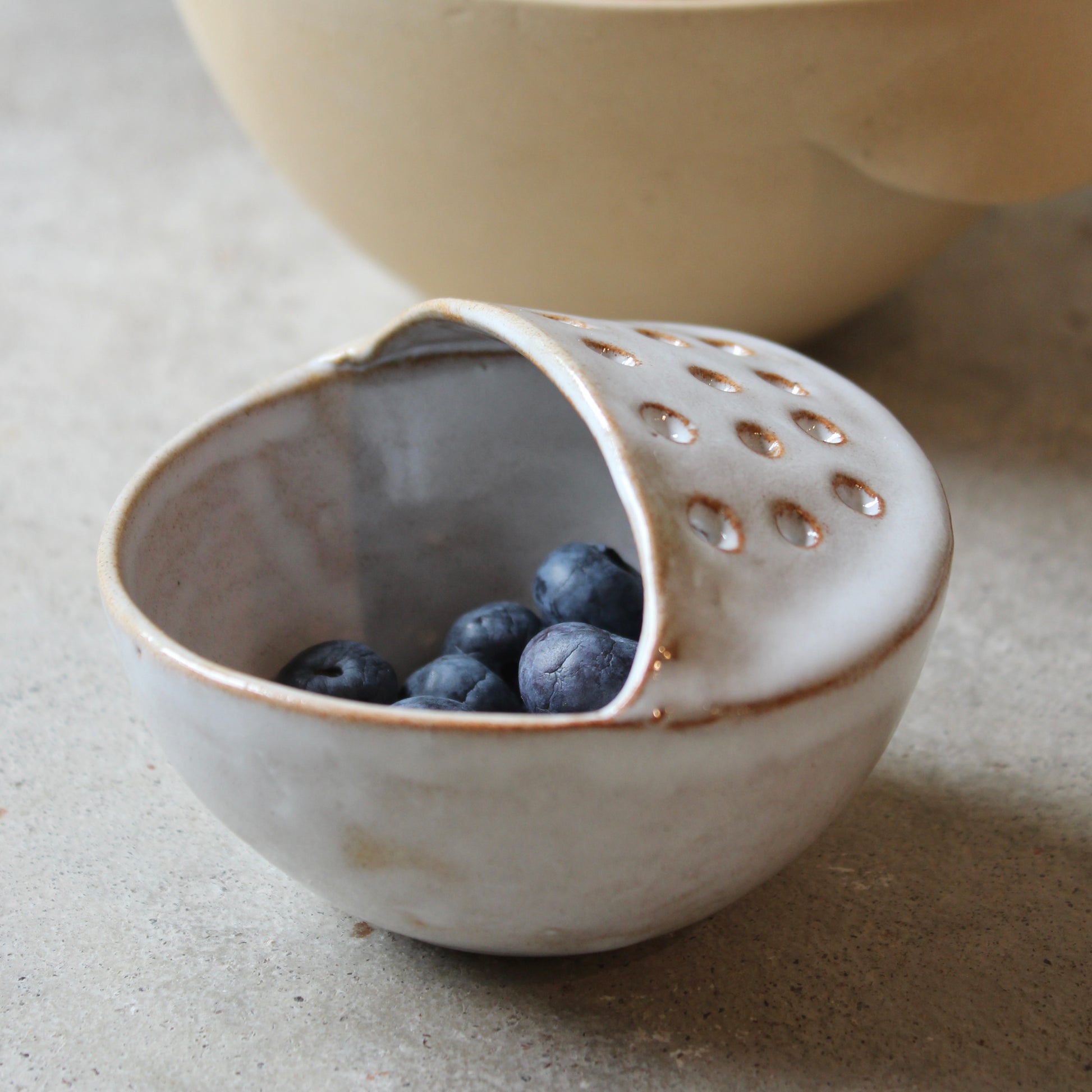 Suloinen pieni keraaminen lävikkö on ihastuttava pieni apuri arkeen ja kattaukseen. Se on juuri sopivan kokoinen, kun tarvitset vain huuhtoa kourallisen marjoja, kirsikkatomaatteja tai viinirypäleitä.