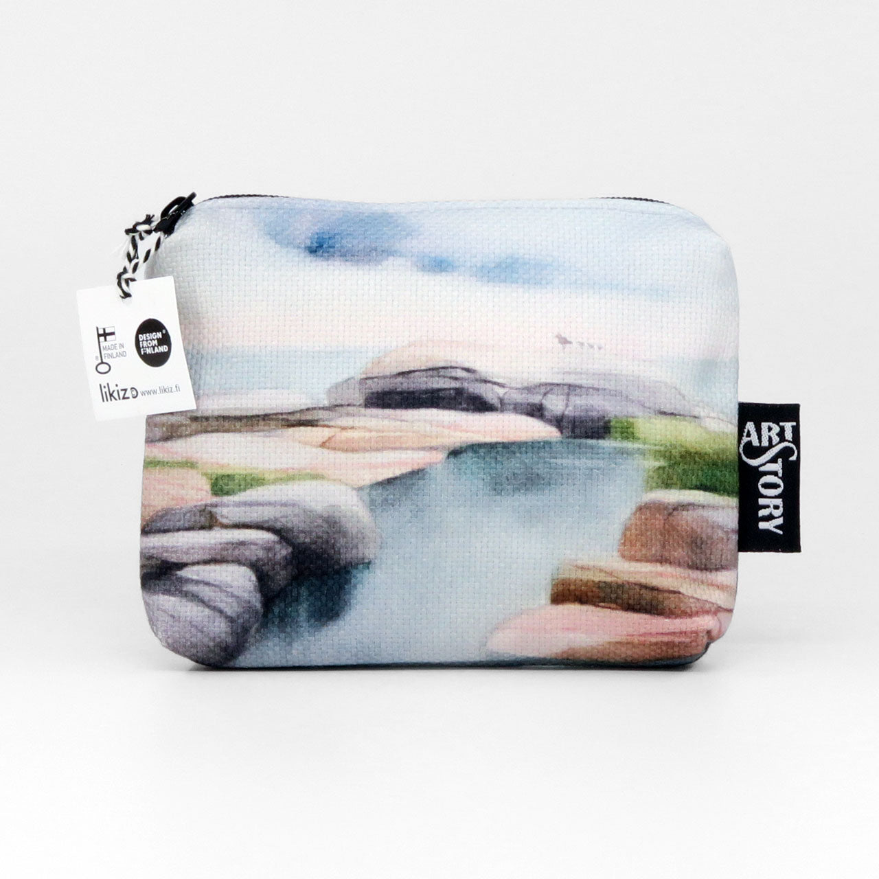 Materiaalina on paksu BCI-sertifioitu 100 % puuvillacanvas, jolle on digipainettu Maarit Lassilan maalaus käsintehdyn originaalin mukaan. Suloisen sininen vuori 100 % puuvillaa.