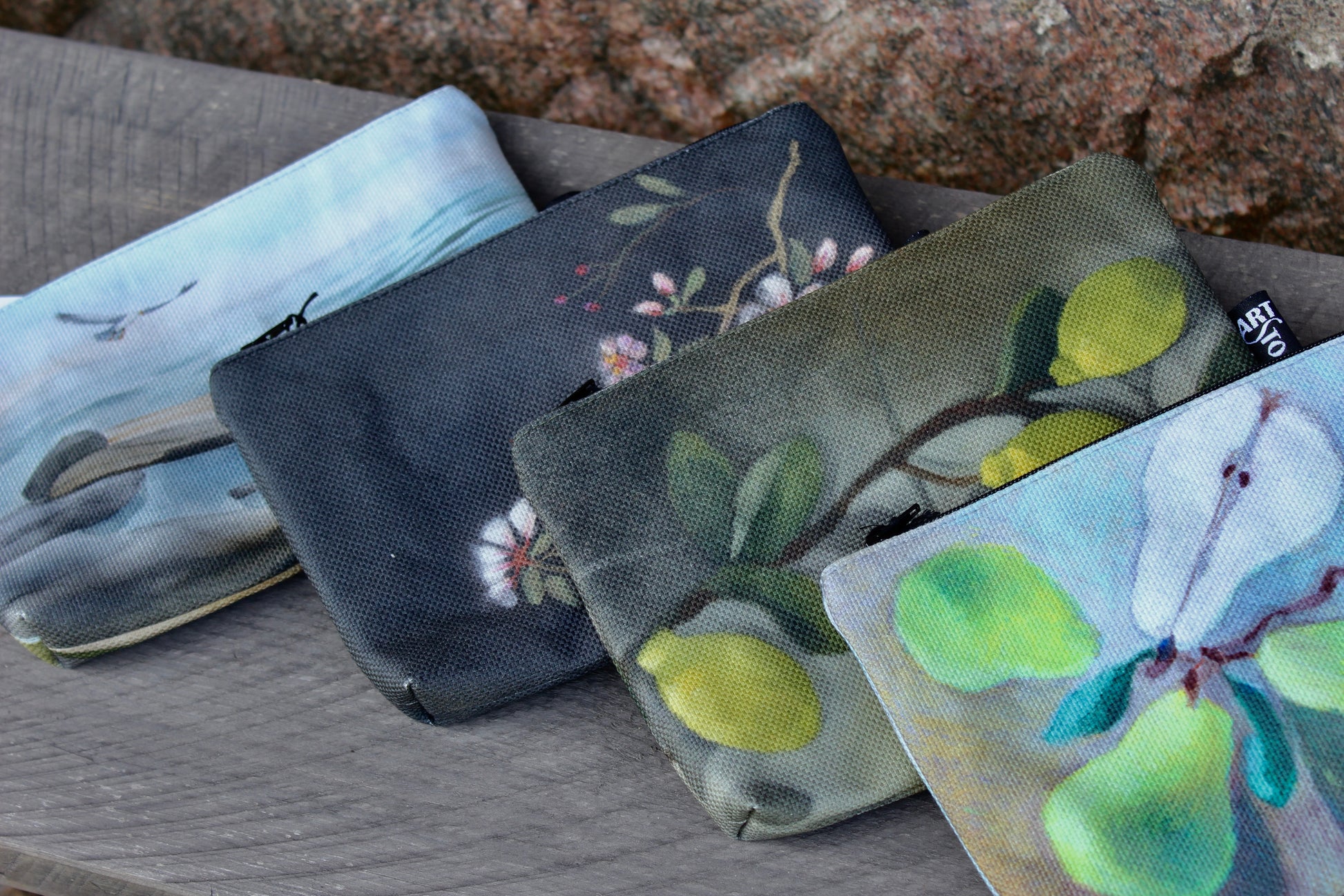Materiaalina on paksu BCI-sertifioitu 100 % puuvillacanvas, jolle on digipainettu Maarit Lassilan maalaus käsintehdyn originaalin mukaan. Virkeän vihreä vuori 100 % puuvillaa. Sisällä kaksi sivutaskua.