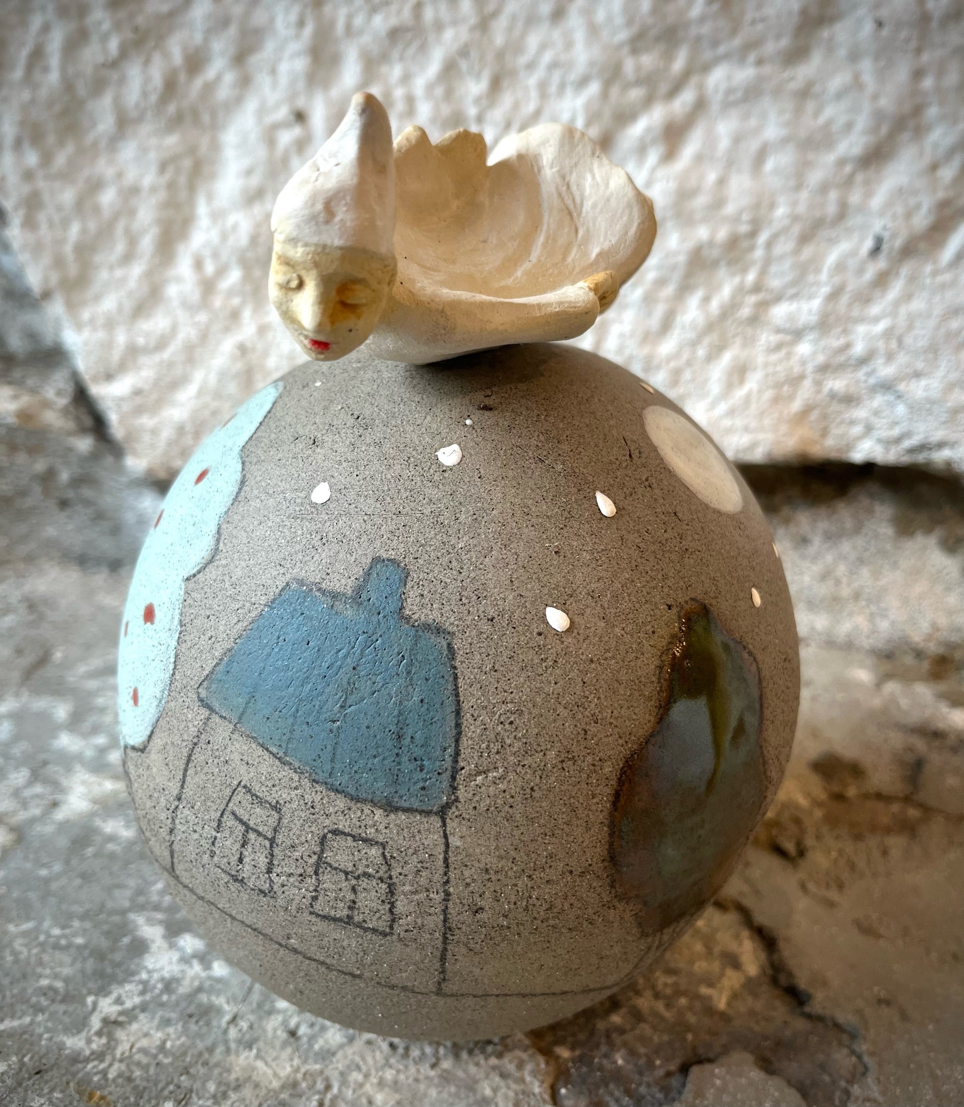 Unissa lentäjä on Maarit Lassilan käsintehty uniikki veistos. Se on kivitavara keramiikkaa.